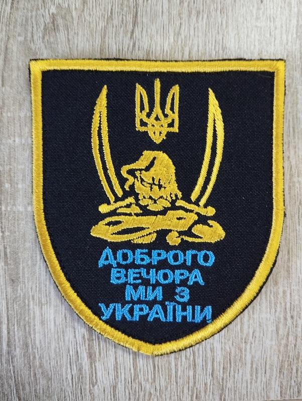 Шеврон з козаком, тризубом і шаблями. Вишивка