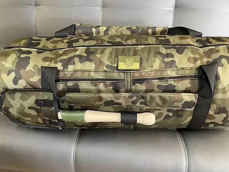 Лапата та каримат в комплект не входять ! Сумка має додаткові кріплення для малої саперної лопати та каримата.Виріб виконаний з міцної тканини - Оксфорд з пвх просоченням.Використовується блискавка тракторного типу з двома бігунками.Сумка має дві додаткові кишені збоку також блискавка тракторного типу . Сумка-баул з двома нейлоновими лямками, що дозволяє носити сумку на спині як рюкзак, так і в руках як звичайну сумку. Додаткова ручка для перенесення розташована в торці баула, що робить його зручним для підтягування та перенесення у вертикальному положенні. Цей баул буде корисним для рибалок, мисливців, військових, туристів, любителів активного дозвілля. Розмір 90*40*40. Внутрішня сторона має підкладку. Об`єм 120 л