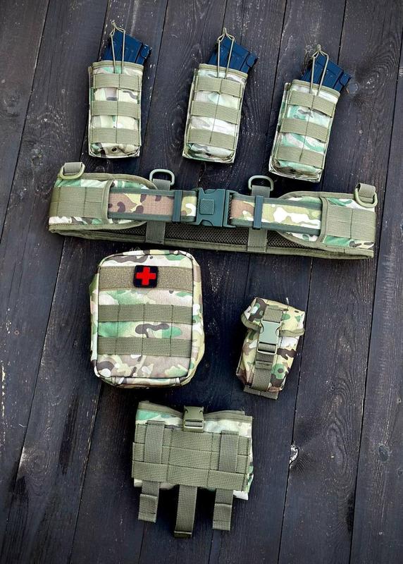 В комплекті Розвантажувальний ремінь РПС факсекс 1 шт Тактична сумка для сбросу пустих магазинів 1 шт Нейлоновий підсумок для тактичної аптечки 1 шт Підсумок з для АК або 3 шт Підсумок під гранату 1 шт 1.Розвантажувальний ремінь РПС Без плечиків!!! Довжина ременя регулюється від 110 см до 95 см. Розмір підкладки 90*10 см РПС оснащений кріпленнями для подальшого використання плечиків та ремнем "фастексах" на магнітній застібці. Ремінь змінний. В середину вшита помякшуюча підкладка що слугує додатковим демфером. РПС оснащений дихаючою 3D сіткою з внутрішньої сторони, що робить його більш комфортнішим у використанні. С зовнішньої сторони система моллі з міцної та надійної поліамідної стропи, для кріплення підсумків та іншого додаткового спорядження. Все прошито армованими нитками, що підвищує термін служби виробу. 2Тактична сумка для сбросу пустих магазинів. Розмір: 27 х 25 см Виготовлена з водонепроникної тканин Оксфорд 600D, якісна фурнітура, система молі. 3 Нейлоновий підсумок для тактичної аптечки Характеристики: Матеріал: Водонепроникна міцна тканина 600d Кріплення: на стегно, MOLLE Зовнішні габарити: 19 см х 16 см х 10 см 4 Підсумок з боками призначається для носіння одного магазину АК або М16, як на розвантажувальних жилетах і бронежилетах, так і на будь-якому спорядженні, оснащеному кріпленням MOLLE. На звороті підсумка розташоване кріплення MOLLE з фіксацією ремінців на кнопці. Матеріал Cordura 16×7×3,5 см