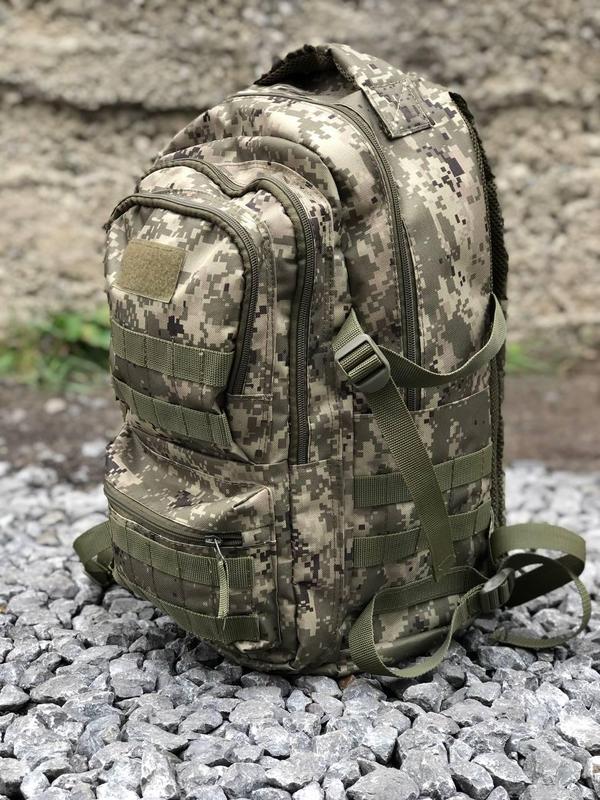- Одне основне відділення - Три передні кишені - Бокові кишені - Липучка для шевронів - Система моллі - Бокові стяжки - Тканина міцна, водостійка