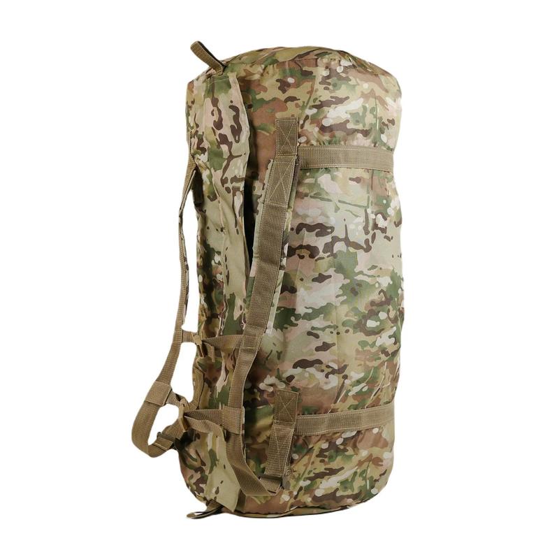 Сумка-баул 80 л мультикам Великі баули мають популярність у кожній армії, призначені для перенесення індивідуальних речей і спорядження бійця. Циліндрична форма баула дає змогу переносити в ньому речі різної форми, як-от спальний мішок, невеликий каремат, особисті речі, різне спорядження. Баул Kiborg 80 зроблений із посиленої тканини Oxford 600D, з водонепроникним просоченням. Конструкція баула передбачає його перенесення двома способами: - на плечах (як рюкзак) - у руці. Для цього баул обладнаний двома м'якими лямками з міцної стропи завширшки 5 см. Лямки дають змогу носити баул на спині як рюкзак, і в руках як звичайну сумку. Усі стропи прошитий посиленими швами високоякісною ниткою. Зсередини периметром шви оброблені та зміцнені окантовною стрічкою. Фурнітура: 100% Поліамід відповідає технічним вимогам Міністерства Оборони України. Загальний об'єм баула — 80 л. Є потайна кишеня всередині баула, яка застібається на блискавку. Для зручнішого використання наповненого баула передбачений фастекс, який застібає на грудях 2 лямки в положенні рюкзака. Розміри: -довжина: 74 см -Діаметр: 37,5см
