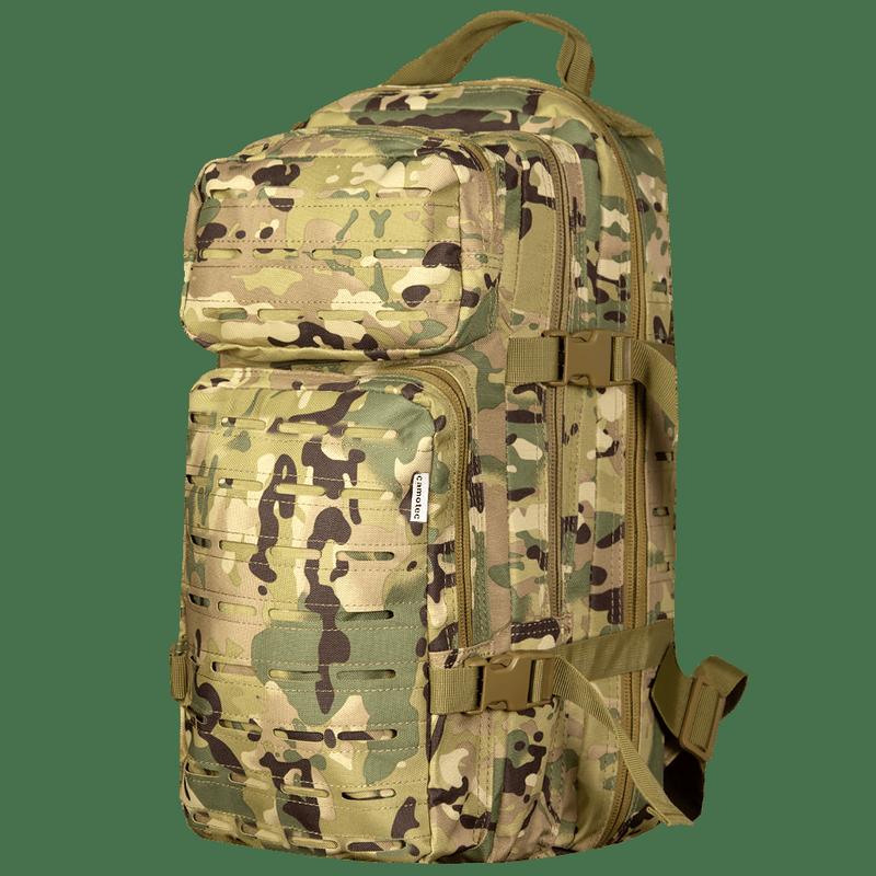 Тактичний рюкзак об'ємом 25 л. Рюкзак має ряд конструктивних особливостей, таких як стропи MOLLE, зроблених за технологією LC (laser cut), пулери на бігунках, D-кільця, а також додаткові лямки для фіксації об'єму (компресійні лямки). Може використовуватись, як і під час виконання тактичних завдань, так і для активного відпочинку чи подорожей. * * * Рюкзак вироблено з високоякісної тканини Oxford 900D. Вона виконана з міцних поліестерових волокон з накаткою з PVC, та має характерне для всіх тканин Oxford плетіння рогожка. Тканина дуже щільна, використовується для пошиття сумок і рюкзаків. Якісне PVC покриття захищає від швидкого потрапляння вологи всередину. Тканина стійка до стирання і розривів. Цей матеріал стійкий до ультрафіолету, добре переносить високі, та низькі температури. * * * Вставки ортопедичної спинки та лямки виконані з м’якого, спіненого матеріалу, що своєю чергою зменшує навантаження на спину та плечі, а також не викликає дискомфорт при тривалій експлуатації. Додатково по боках та спереду на рюкзаку присутні стропи з пластиковими застібками, вони допомагають утримувати форму рюкзака, а також регулювати його об’єм. Завдяки чому вага рівномірно розподіляється по всій площі рюкзака. Також на рюкзаку знизу є стропа,що фіксуються на поясі. Відділення рюкзака: Два основних, місткихвідділення на застібці-блискавці. Всередині присутнідодатковівідсіки. Ще два невеликих відділення спереду для дрібних речей, з додатковими відсіками всередині. Всі застібки-блискавки мають пулери для зручної роботи з ними в рукавичках. Також на рюкзаку зверху присутня ручка для зручної переноски в руках. Спереду присутні якісні стропи Molle, які зроблені за технологією Laser Cut. * * * Матеріал: Oxford 900D PVC Склад: 100% Поліестер Висота: 48 см (можлива похибка +/- 2 см) Довжина: 22 см (можлива похибка +/- 2 см) Ширина:22 см (можлива похибка +/- 2 см) Об’єм:25 л Додаткові параметри: • Тактичні рюкзаки та сумки: Рюкзак • Поставки: В наявності