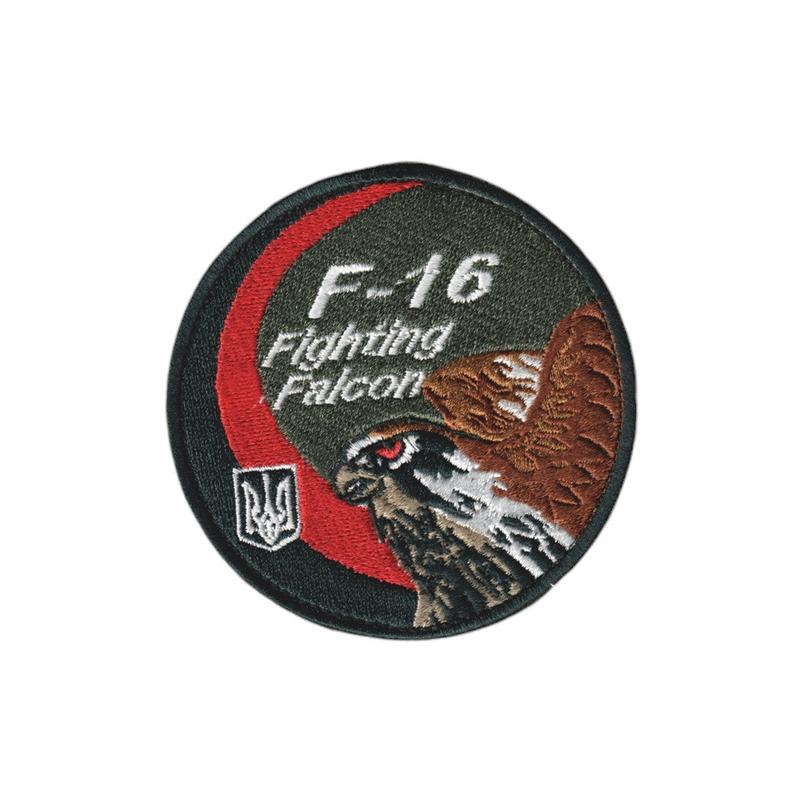 Шеврон військовий / армійський, f 16 fighting falcon, на оливці, на липучці, діаметр 8 см