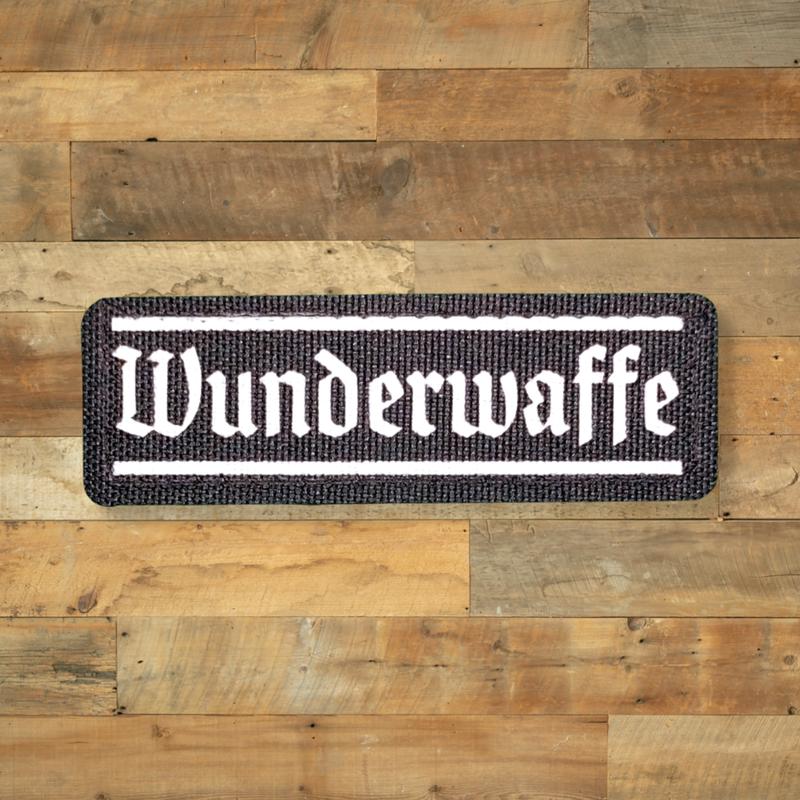 Wunderwaffe (Диво-зброя), патч друкований. Розмір - 9х3 см. Спосіб кріплення - липучка (велкро). Спосіб виготовлення - сублімаційний (водостійкий) друк. Використані зносо та водостійкі матеріали. Лазерна обробка краю.
