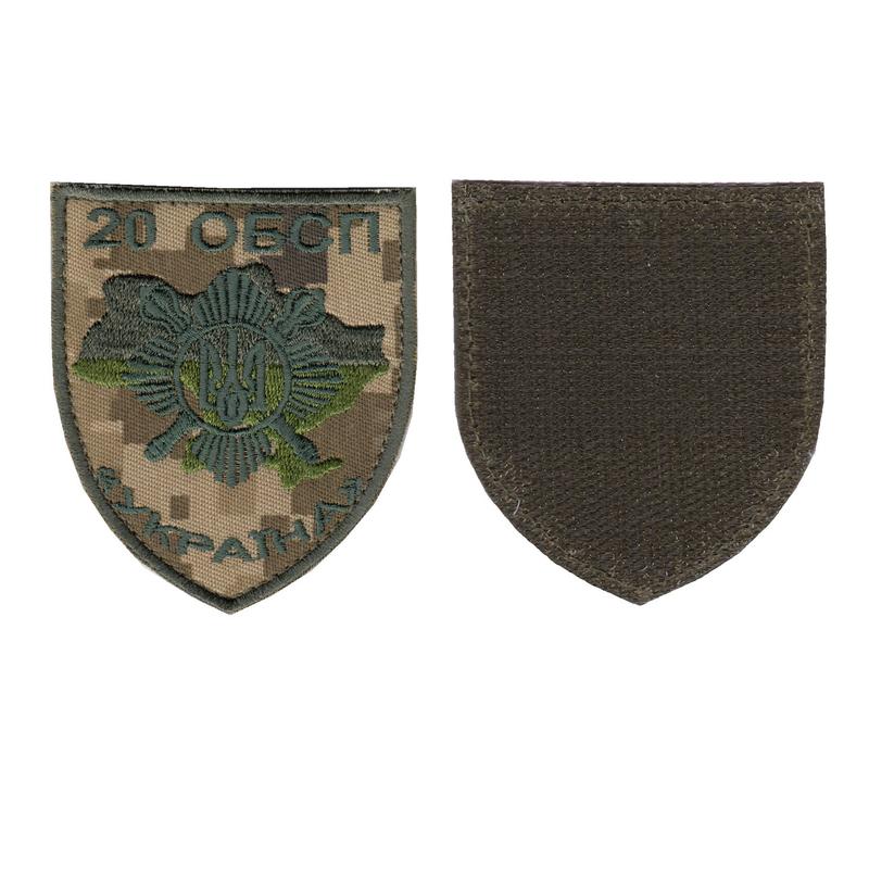 Шеврон військовий / армійський, 20 ОБСП, на пікселі, ЗСУ. 8 см * 7 см