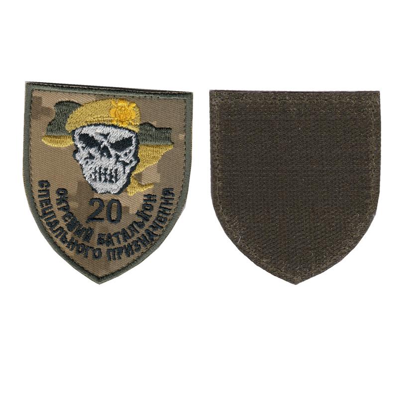Шеврон військовий / армійський, 20 ОБСП, на пікселі, ЗСУ. 8 см * 7 см