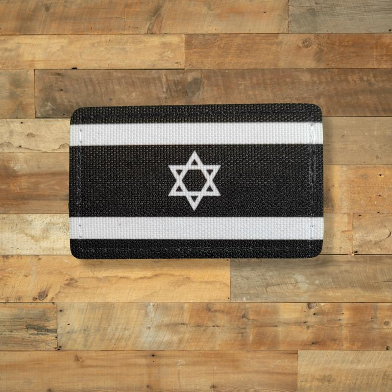 Прапор Ізраїлю, чорно-білий, патч друкований Розмір - 8х5 см. Спосіб кріплення - липучка (велкро). Спосіб виготовлення - сублімаційний (водостійкий) друк. Використані водо та зносостійкі матеріали. Лазерна обробка краю.