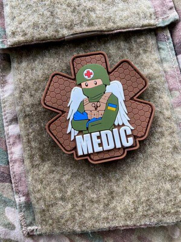 Патч \ шеврон «Medic» польовий Гасло тактичної медицини: "Правильні дії у правильний час!" наголошує на важливості правильного та своєчасного медичного втручання. Враховуючи це, шеврон служить для ідентифікації медичного персоналу. Цей медичний ідентифікатор має діаметр 70 мм і виготовлений з високоякісного ПВХ матеріалу. Він має двоколірне оформлення у відтінках: coyote/olive. Кріплення виконане за допомогою липучки велкро, що дозволяє його легко закріплювати та переміщати на різних частинах одягу чи спорядження. Цей ідентифікатор створений для покращення організації та координації медичних заходів у військових або тактичних ситуаціях.