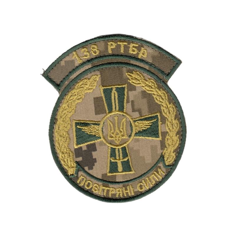 Шеврон військовий / армійський, 138 ртбр повітряні сили, на пікселі, зсу. 8,5 см* 10,5 см