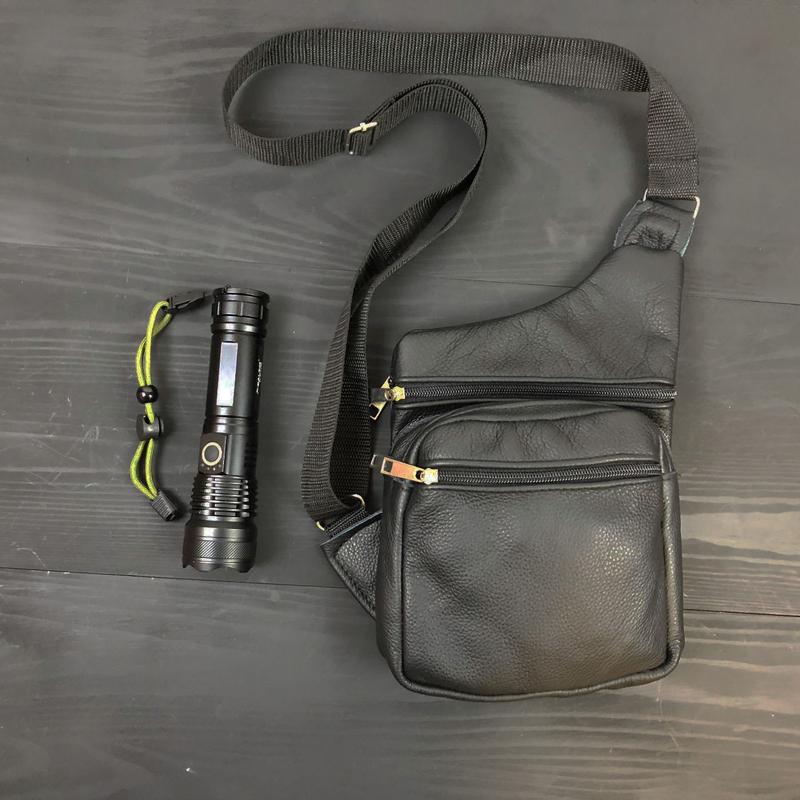 Подарунковий набір 2в1! сумка шкіряна + професійний ліхтар: police bl-x71-p50