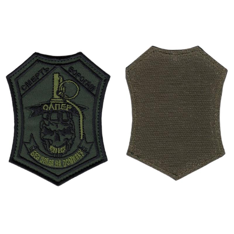 Шеврон військовий / армійський, Сапер без права на помилку, на оливці, ЗСУ. 10 см * 8 см