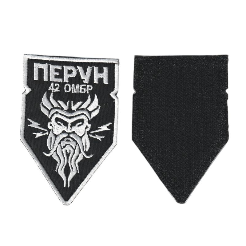 Шеврон военный / армейский, Перун 42 ОМБР, на черном, ВСУ. 7см * 10,5см