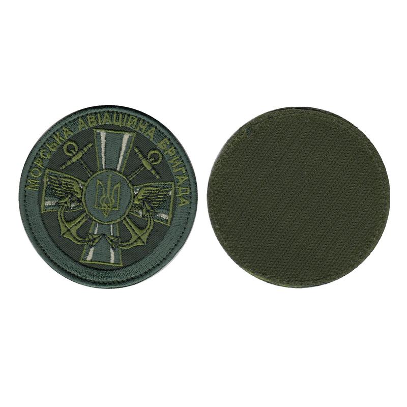 Шеврон ЗСУ, військовий / армійський, 10 морська авіаційна бригада ВМС України, на оливці, на липучці, діаметр 8 см