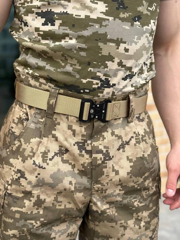 Тактичний ремінь виготовлений із міцного зносостійкого нейлону 1000D. За рахунок продуманої пряжки легко можна розстебнути однією рукою. На відміну від попередніх моделей змінено механізм затягування ременя на більш надійний, а також пряжка, яка витримує більшу вагу. Відмінно підходить як основний ремінь під час використання м'якого розвантажувального пояса. Особливості: Підходить не тільки для військового екіпірування, а й для повсякденного носіння; Завдяки високій міцності пояса та надійній металевій пряжці, відмінно служить у тривалому носінні; Міцний на розтяг та протитиск; Витримує сильне навантаження; Міцна металева пряжка, дуже надійна; Довжину можна регулювати. Характеристики: Довжина: 140 см; Ширина: 4 см; Матеріал: Міцний нейлон 1000D; Пряжка: Цинковий метал;