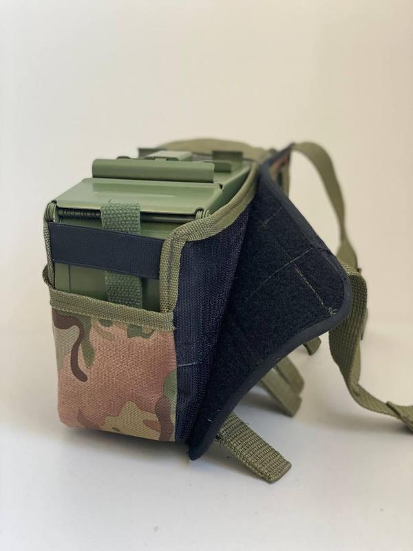 Підсумок під кулеметний короб ПКМ дозволяє зручно переносити та при необхідності швидко застосувати короб під час виконання бойових завдань. Характеристика: - 2 міцні тасьми забезпечують фіксацію короба усередині підсумку; - додаткова фіксація за допомогою фастексів ; - з відривною спинкою, швидко знімається; - універсальна система MOLLE з фіксаторами забезпечує надійність кріплення підсумка; - підсумок пошитий горизонтально, спеціально по проханням військових. - Матеріал: виготовлений із водовідштовхувальної тканини Oxford 600D у два шари.