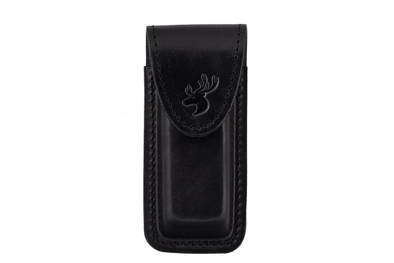 Чохол для складних і багатофункціональних ножів з натуральної шкіри чорного кольору з фіксатором у вигляді липучки (Velcro). Липучка дає більше свободи при регулюванні розміру чохла - розмірний люфт в даному випадку може досягати 1 см, що дуже важливо при підборі чохла до ножа! Чохол виготовляється з ремінної шкіри завтовшки 3-3.5 мм, прошитий капроновою ниткою в колір шкіри. Підходить для носіння на ремені шириною до 50 мм. Чохли від Svarog також підійдуть для носіння невеликого ліхтарика, кресала або брусочку для правки ножа.