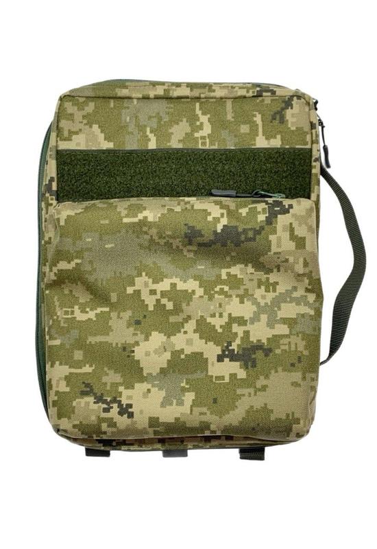 Розміри: довжина 32 см, ширина 23 см, товщина 5 см. Кольори: піксель, мультикам, олива, койот, чорний, хижак. Матеріал: кордура 1000 D. Максимальний розмір ноутбуку або планшету 31 х 22 х 3 см. Фіксується до плитоноски або до рюкзака. Підсумок (подсумок) призначений для захисту та транспортування ноутбуку / планшету на рюкзаку, на плитоносці, на плечі. Надмірне відкриття підсумку обмежується страхувальними лямками. Підсумок складається з двох панелей. На внутрішній поверхні однієї панелі облаштована багатосекційна кишеня. Друга панель призначена для розташування ноутбуку/планшету, який фіксується широкими стрічками з велкрозастібками хрест-на-хрест. Стінки підсумку оздоблені шаром полімерного матеріалу, який забезпечує жорсткість стінок та утримання форми. Підсумок оснащений ручкою та великою зовнішньою кишенею, в якому можна транспортувати маніпулятор (комп'ютерну мишу), акумуляторну батарею пристрою, кабелі, навушники. Опт: знижка 10% від 10 одиниць. Відправка замовлень: • понеділок-четвер - відправлення наступного дня; • п'ятниця до 12:00 - відправлення того ж дня; • п'ятниця після 12:00 - відправлення наступного понеділка; • субота-неділя - відправлення наступного понеділка. Відправлення оптових замовлень погоджується індивідуально. Власне виробництво дає повну впевненість в якості наших виробів. Випускаємо продукцію, яка і через місяць, і через рік буде впізнаваною. Швидко розробляємо, удосконалюємо та запускаємо у виробництво моделі, в яких є особлива потреба. Покупець отримує товар за дуже привабливою ціною з перших рук. Виконуємо індивідуальні замовлення Не зупиняємось на досягнутому Відкриті для вас 24/7 03 Топ категорій Підсумки на магазини АК, РПК, СВД, ППШ Подивитись Підсумки на гранати ВОГ Подивитись Напашники Подивитись Залиште заявку на сайті або зв'яжіться з нами будь-яким зручним засобом зв'язку У разі потреби з'ясуйте та погодьте деталі замовлення Оплата при отриманні, пром-оплата, оплата за реквізитами Співпрацюємо з перевізниками України Весь асортимент