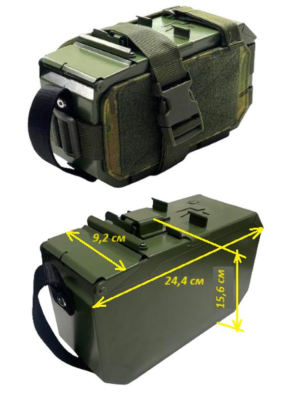 Размеры: высота 26 см, ширина 17 см, толщина 10 см. Цвета: пиксель, мультикам, олива, койот, черный, хищник. Материал: кордура 1000 D. Подсумок предназначен для размещения пулеметного короба с габаритными размерами: длина 24.4 см, высота 15.6 см, ширина 9.2 см. Модель состоит из двух частей: чехла для короба и платформы с велкропанелью и застежкой «фастекс». Конструкция изделия позволяет носить короб как справа, так и слева на экипировке. Платформа оснащена жестким «язычком», который выполняет функцию направляющей в момент установки скомплектованного короба на велкропанель и подстраховывает от нежелательного отрыва от места фиксации. Платформа крепится к снаряжению с помощью интерфейса MOLLE. Опт: скидка 10% от 10 единиц. Отправка заказов: - понедельник-четверг - отправка на следующий день. - пятница до 12:00 - отправка в тот же день. - пятницу после 12:00 - отправка в следующий понедельник. - субботу-воскресенье - отправка в следующий понедельник. Отправка оптовых заказов согласовывается индивидуально. Собственное производство дает полную уверенность в качестве наших изделий. Выпускаем продукцию, которая и через месяц, и через год будет узнаваемой. Быстро разрабатываем, совершенствуем и запускаем в производство модели, в которых есть особая потребность. Покупатель получает товар по очень привлекательной цене из первых рук. Выполняем индивидуальные заказы Не останавливаемся на достигнутом Открыты для вас 24/7 03 Топ категорий Подсумки для магазинов АК, РПК, СВД, ППШ Посмотреть Подсумки для гранат ВОГ Посмотреть Напашники Посмотреть Оставьте заявку на сайте или свяжитесь с нами любым удобным средством связи При необходимости, выясните и согласуйте детали заказа Оплата при получении, пром-оплата, оплата по реквизитам Сотрудничаем с перевозчиками Украины Весь ассортимент