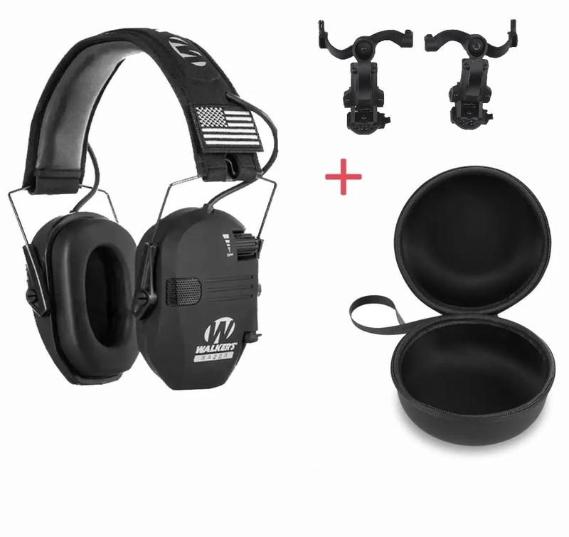 Активні навушники walker's razor з чохлом і кріпленнями ops core для стрільби чорні навушн...