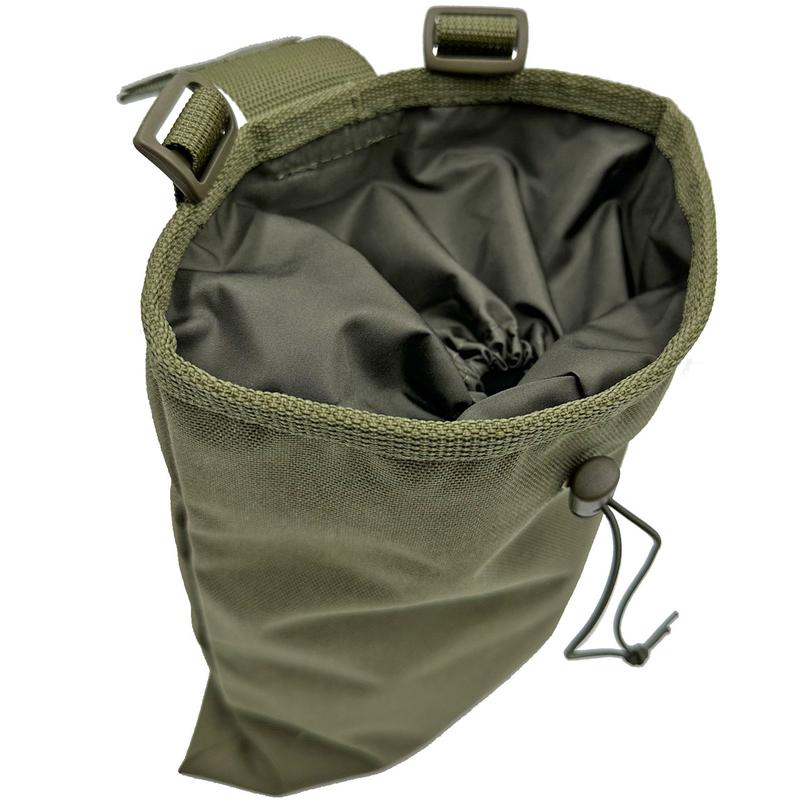 Drop Bag Конструкція - основний відсік для скидання магазинів з посиленою окантовкою горловини, для її утримання у відкритому стані. - клапан з підкладкової тканини на шнурку-резинці, для моментального закриття сумки. - лямки для фіксації на MOLLE сумісному спорядженні. Використовувані матеріали - ремінна стрічка - 100% поліестер - фурнітура WOOJIN - 100% нейлон - липучка - 100% нейлон клас А - тканина Polycordura 900 D PU 1. Склад: 100% поліестер 2. Щільність м2: 320 гр 3. Покриття: 1 шар поліуретану (PU)