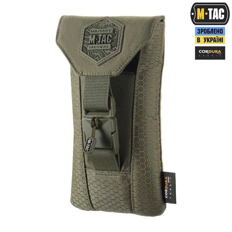 Підсумок Elite Large Hex – це відмінне рішення для дбайливого зберігання смартфона з діагоналлю до 6.5 дюймів. Виготовлений із Cordura 500D і Cordura Hex 1000D – надміцного, зносостійкого та легкого у догляді матеріалу. З внутрішньої сторони відсік для гаджета виконаний із м'якого Velcro велюру, що виключає пошкодження скла. Підсумок закривається кришкою-клапаном із магнітною пряжкою Woojin, що гарантує надійний захист телефону від випадання. На клапані розміщений стильний шестикутник із логотипом компанії. Виріб кріпиться до пояса або чіпляється на спорядження за допомогою Molle інтерфейсу. Даний аксесуар стане в пригоді всім, хто піклується про надійне збереження свого телефону. Матеріали: Cordura 500D, Cordura Hex 1000D Фурнітура: Woojin Розміри: 18.5 х 10.5 см Завдяки своїм унікальним якостям Cordura широко застосовується в тактичному спорядженні військових, сил правопорядку і спеціального призначення. В основному - це матеріали з лінійною щільністю 1000d і 500d. Лінійна щільність - це співвідношення маси нитки матерії і її довжини. Вимірюється в Денье (denier). Ця одиниця виміру загалом застосовується для нейлонових виробів. Відповідно, чим вище цей показник, тим щільніша і важча тканина. Фізико- технічні характеристики CORDURA 1000D дуже високі, розривне навантаження становить близько 3000 Н, роздираюче навантаження близько 150 Н. Стійкість до стирання більше 50000 циклів. Використовується для одягу, чохлів, підсумків. Вироби, пошиті з матеріалів CORDURA безсумнівно пройдуть випробування часом і відстанню. CORDURA - це міцність, надійність і стиль. За показниками міцності вона поза конкуренцією.