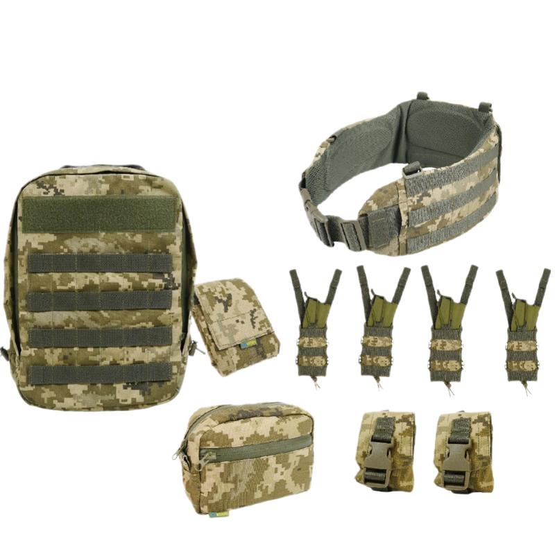 ## Пояс РПС R1 с карманом под баллистический пакет и Рюкзак Мультикам для тактического снаряжения VE-33 В комплекте Пояс РПС R1 с карманом под баллистический пакет 94x18 1 шт Магазины для АК с пластиковыми боками 4 шт Сумка сложная для сброса магазинов 1 шт подсумок под гранату 2 шт< Универсальный подсумок 1 шт Рюкзак для плитоноски 10 л 1 шт Без лямок ! Минимальный обхват 104 см Максимальный обхват 120 см< Длина общая 94 см Ширина 18 см Широкий тактический пояс анатомической формы изготовлен из самых современных материалов высокого качества Основная ткань - Cordura Nylon 1000D со специальным IRR-покрытием, которое не контрастирует в приборах ночного видения. Фурнитура - 100% Полиамид Внутренняя сторона пояса выполнена из 3D сетки, это способствует эффективному отводу тепла от оператора и надежной фиксации на талии. Пояс хорошо держит форму благодаря жестким пластиковым вставкам внутри. В то же время он достаточно мягкий с внутренней стороны благодаря использованию наполнителя общей толщиной 15мм. Такое сочетание позволило получить отличные амортизирующие свойства и облегчить нагрузку на тело во время длительного использования. Все сторопы полиамидны. Они сверхпрочны, не растягиваются и не впитывают влагу. Основная стропа на поясе шириной 50мм с фастексом Coplok от Woojin Plastic (Южная Корея) с дополнительной защитой от случайного раскрытия. Есть возможность ее замены на любой другой пояс. Одной из важнейших особенностей пояса является карман на велкро, из-за которого есть возможность замены наполнителя на противоосколочный баллистический пакет. Пояс имеет анатомический крой и выглядит треугольником, имеет подсредненный угол, который предотвращает убывание. На верхней части пояса есть четыре точки крепления, что дает возможность использовать его с любой подвесной системой и сделать из пояса полноценный РПС. На нижней части два крепления для тактической сидушки или каремата. На боковых частях три ряда с-ми molle для крепления подсумоков. Задняя часть увеличена и выполнена с 4-мя рядами molle, что позволяет максимально снарядить пояс необходимыми подсумоками. Сумка для сброса Вмещает до 8 магазинов Материал: Кордура 1000D: Удобный при использовании. Ободок подсумока сделан жестким благодаря чему хорошо держит форму в открытом положении. Размер в сложенном виде: 13.5 см. × 11 см. × 4.5 см . Разложенном: 26 см. × 34 см. Универсальный подсумок Размеры: 20х15х5 см Материал: Cordura Nylon 1000D < br /> Основные характеристики: • емкость 10 л. • размер (см): 38/30/13 • крепеж на системе MOLLE • компрессионные резинки по бокам • имеет в середине 2 объемных кармана • имеет велкро панель для креплений шевронов и патчей. • закрывается на молнию прикрытую клапаном. • дополнительные стропы MOLLE спереди. • усиленные швы • армированные нити Рюкзак для плитоноски 10 л Рюкзак крепится сзади плитоноски, спинки РПС не мешая выполнять задачи и перемещения. Успейте заказать, количество штук по акции ограничено! Остерегайтесь подделок и низкокачественного товара, его сейчас очень много представлено под видом oригинaлa! Мы предлагаем высочайшее добротное качество товара на рынке Украины, который выполняет свою функцию и от которого вы будете получать только приятные эмоции. Почему покупают именно у нас? Отзывы и рекомендации реальных клиентов Наш магазин имеет многочисленные положительные отзывы от довольных клиен