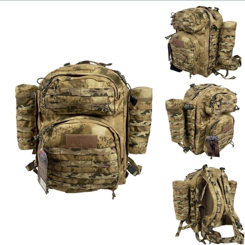 Колір: Камуфляж зелений Камуфляж піщаний Вмісткість: 80 л Вага: 2200 г Розміри: 55x40x36 Виробництво: Туреччина Якісний, міцний та надійний тактичний рюкзак виготовлений з урахуванням потреб військових. Присутня система MOLLE . Також, важливою є фурнітура, у даній моделі якісна фурнітура - YKK. * Водонепроникна і міцна тканина Cordura. * Блискавки YKK, що відкриваються на 180 градусів * Завдяки ергономічній конструкції з м'якою спинкою можна зручно носити речі навіть тривалий час, розподіляючи вагу по всьому тілу, запобігаючи болю в попереку та пітливості. * Є відсік для гідратора, а також подвійні відділення для напувалок з боків, місткість шкірного 1,5 л. * Поясний ремінь з регульованою довжиною