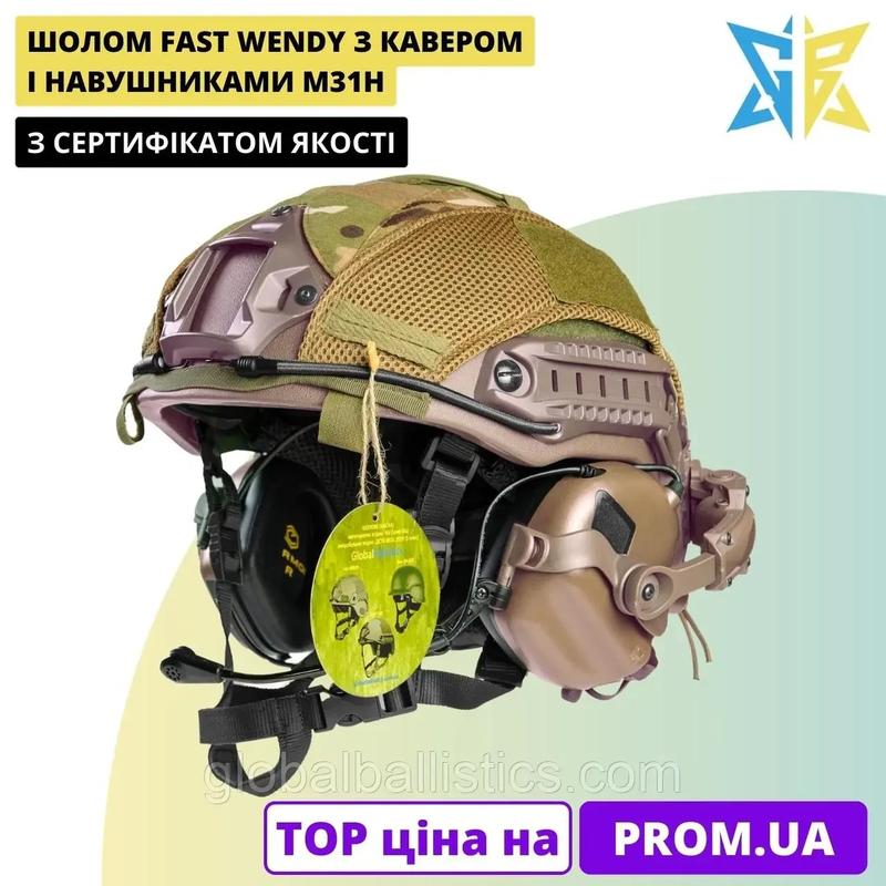 Шолом fast wendy койот в кавері з оригінальними навушниками earmor m32/m31 і кріпленням "ч...