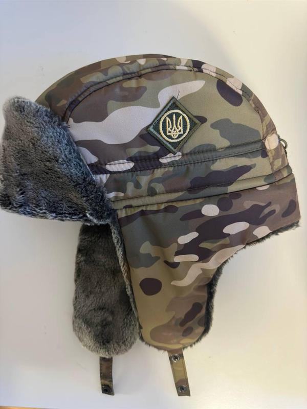 🖍Шапка - вушанка з гербом Артикул: 0807 💵Ціна 650грн. ⚫Шапка - вушанка ⚫Сезон - зима ⚫Підкладка - фліс, обробка хутро ⚫Розмір один, універсальний, та регулюється ⚫З правої сторони- шеврон - герб