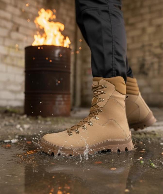 Зимові берці з натуральної шкіри TRINIDAT кайот арт 94143 — це ідеальний вибір для холодної пори року. Виготовлені з натуральної гладкої шкіри преміум-якості, вони забезпечують надійний захист від вологи та зношення. Утеплювач з євро-овчини (50% натурального хутра, 50% синтетики) дозволяє витримувати навіть найнижчі температури до –25 °C, зберігаючи тепло та комфорт при тривалому носінні. Шнурівка з металевими петлями забезпечує підтримку та фіксацію гомілкостопа, а анатомічна форма колодки робить їх зручними для щоденного використання. Підошва з термополіуретан (ТПУ) має глибокий протектор «Трактор», що гарантує впевнене зчеплення зі складними поверхнями — снігом, льодом та ґрунтом. Модель представлена в універсальному кольорі, що доповнює лаконічний дизайн. Легкі, зручні, адаптовані під військові та тактичні завдання, ці берці стануть надійним супутником у будь-яких умовах.