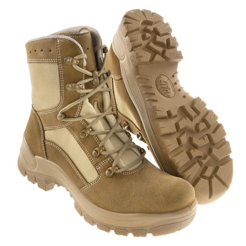 HAIX Group Країна Німеччина Матеріал Нубук Верх Гідрофобний нубук Підкладка Мембрана Gore-tex® Носок Посилений П'ята Посилена, Задній зовнішній ремінь з петлею Підошва Двокомпонентна, Гума, не ковзаюча, маслостійка Метод кріплення підошви Проклейка Устілки Анатомічні Застібка Шнурки Міцні військові черевики, призначені для тривалого носіння в польових умовах. Верх виконаний з водонепроникної замші зі вставками з еластичного текстильного матеріалу. Мембрана GORE-TEX відводить вологу від взуття, не даючи волозі проникнути всередину. Швидка система шнурівки полегшує знімання та надягання взуття. Всередині взуття є вологопоглинаючі устілки Texon, які забезпечують амортизацію та підвищують комфорт використання. Підошва з глибоким протектором виготовлена ​​зі спеціальної гумової суміші з антистатичними властивостями. Така гума забезпечує дуже хорошу адгезію навіть у важких умовах, стійка до масел, жирів та бензину. Крім того, підошва оснащена амортизаційною вставкою з PU, яка зменшує удари, зменшує навантаження на суглоби та значно підвищує комфорт використання. 37 (240 мм) 38 (245 мм) 39 (250 мм) 40 (255 мм) 40.5 (260 мм) 41 (265 мм) 42 (270 мм) 43 (275 мм) 43.5 (280 мм) 44 (285 мм) 45 (290 мм) 46 (300 мм) 47 (305 мм)