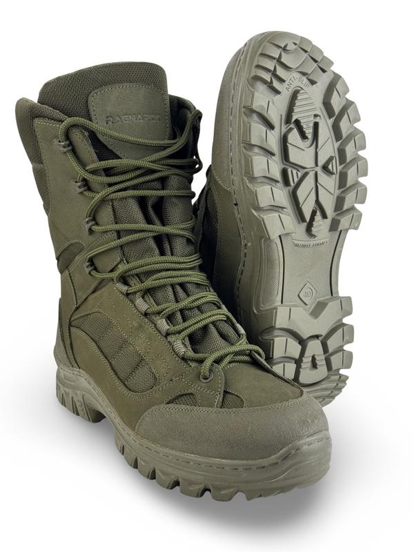 Тактичні берці Ragnarok — захист і тепло ваших ніг в різноманітних умовах. Взуття виконане з гідрофобного нубука, водонепроникних тканинних вставок Cordura 1000, утеплене мембраною (витримує до -25ʼС) та має двокомпонентну підршву (поліуретан і резина).Черевики мають посилення на носку та п'яті - додатковий захисний шар прогумованої шкіри. Це не тільки суттєво продовжує термін служби виробу, але й відмінно захищає ноги від травм.Спереду черевики мають шнурівку. Система швидкого шнурування дає можливість одягати взуття швидко. Маючи всі ці властивості, наші берці залишаються легкими (вага однієї пари - 1кг).