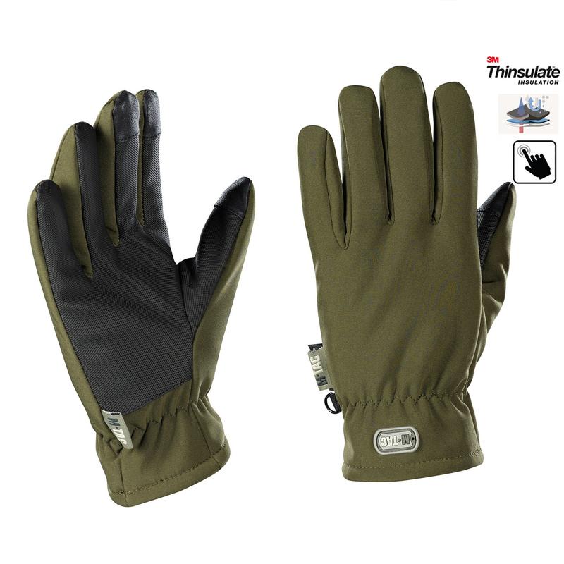 Міцні, еластичні софтшелл-рукавички, стійкі до атмосферних впливів (захист від вітру, снігу і дрібного дощу). Підійдуть для всіх видів outdoor-активності в холодну пору року. Мають масу застосувань в найрізноманітніших умовах. Робота зі зброєю, практична стрільба, прогулянки за містом або щоденне використання в місті, робота по табору - все буде до снаги для M-Tac рукавичок Soft Shell Thinsulate. Завдяки зовнішньому матеріалу вони відмінно захищають від вітру, снігу або вологи і, при цьому, швидко сохнуть. Зона долоні додатково посилена для запобігання передчасного зношення, поліпшення хватки і запобігання вислизанню. Накладка Touch Screen на вказівному пальці дозволить користуватися сенсорними екранами смартфонів, GPS навігаторів і планшетів не знімаючи рукавички. Матеріал: 100% поліестер Утеплювач: 3М Thinsulate 40 gram (Тінсулейт) Особливості: - Технологія TouchScreen - Чудовий захист від вітру, вологи чи снігу - Мала вага, тканина швидко сохне - Додатковий захисний шар на долонях і пальцях - Підгумована стяжка в зоні запястка для поліпшення захисту і тактильності Soft Shell - це одяг, що захищає від негоди і володіє мінімальною вагою та обємом. Його створили на противагу звичайному одягу, який пропонував ховатися від вітру і дощу в штормівках і штормових штанах, а також утеплятися за допомогою флісу і пуху. Завдяки Soft Shell вдається отримати максимальний ефект усього з одним шаром одягу, він замінює три і більше шарів. Утеплювач Тінсулейт ® утримує молекули повітря між тілом людини і навколишнім середовищем. Чим більше молекул повітря утримує утеплювач в одному кубічному сантиметрі, тим краще його теплоізоляційні властивості. Оскільки мікроволокна утеплювача Тінсулейт ® значно тонше волокон інших синтетичних утеплювачів, вони утримують більше повітря в меншому обємі. В результаті утеплювач Тінсулейт ® є найкращим утеплювачем.