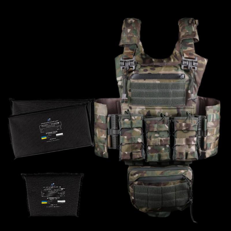Звертаємо Вашу увагу, що фурнітура , може відрізнятись по кольору , в залежності від партіі поставки. В комплекті плитоноска 1 шт. 3 шт підсумки під АК (14*8.5*3.5) - розтягуються в ширину і товщину 1 шт. напашник (22*15.5*5.5см) Балістичний пакет в боковий карман 30*15 см 2 шт Балістичний пакет у напашник : 20*13.5*16.5 см (товщина-20 мм)1 шт Плитоноска бокові кармани під балістичні пакети з політелену 15*20 см або 15*30 см Плитоноска під плити 30*25 см Плитоноска надміцна вологостійка Cordura 1000 D все прошите армовані нитками з'ємні 3 підсумка під БК на системі Molle в 1 підсумок поміщається 2 ріжка під АК з системою подвійного швидкого скидання, посилений демпфер на грудях, спині та плечах плечеві лямки регулюються по висоті з можливістю швидкого скидання камербанд регулюється під будь-який об'єм попереду ліпучками, на спині резинкою, система Molle по всій поверхні, водонепроникний карман на грудях на змійці для особистих речей або документів, ручка на спині для евакуації. Якість-ТОП ! Напашник Cordura 1000D Унизу 2 гумки для турнекету Розмір 22*17*6 см 3 відділення Можливо встановити балістичний пакет 20*13.5*16.5 Балістичні пакети 1й клас згідно ДСТУ 8788:2018 Матеріал: надвисокомолекулярний поліетилен (НВМПЕ) виробництва компанії Dyneema (made in USA) 1й клас: 8 прошарків політелену 2 прошарки небалістичного кевлару завтовшки 8.0 мм Згідно протоколу відстрілу витримує наступні набої: 9*18 мм (Макарів) 9*19 мм (Luger)