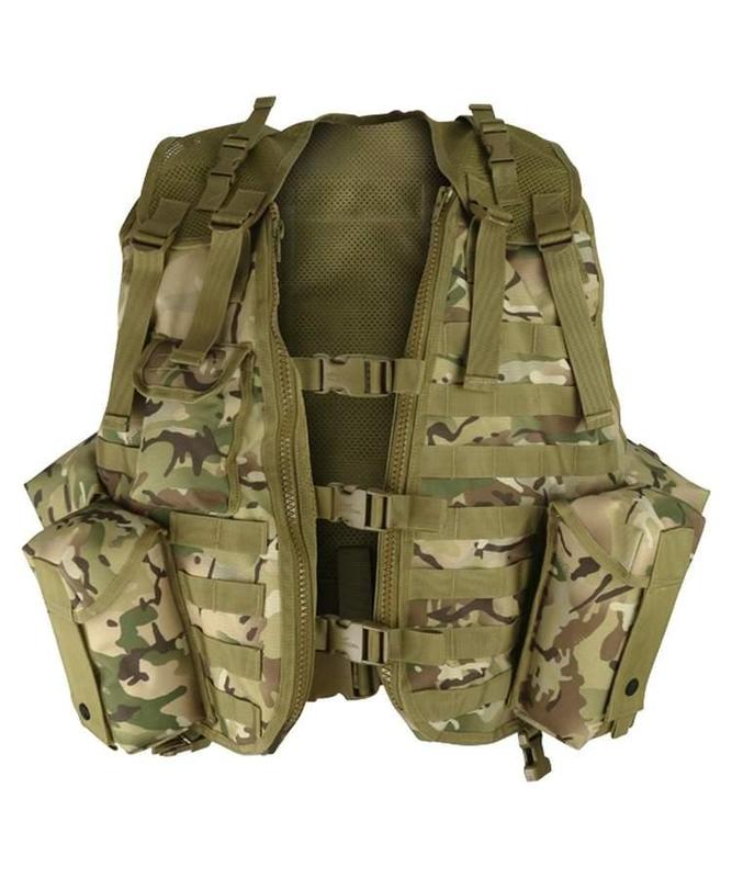 Характеристики: • Ззаду і спереду розмішені кріплення molle • Міцні регульовані ремені на спині • Вентильована сітчаста спинка • 1 фіксований підсумок для боєприпасів • 1 змінний підсумок для боєприпасів molle • 2 великі утилітарні підсумки • 1 крихітка кишеня • Виготовлено з міцного сучасного матеріалу 600D Tac-Poly Додаткові параметри: • Розмір: Uni • Колір: мультікам • Підсумки, плитоноски, РПС: Жилет розгрузка