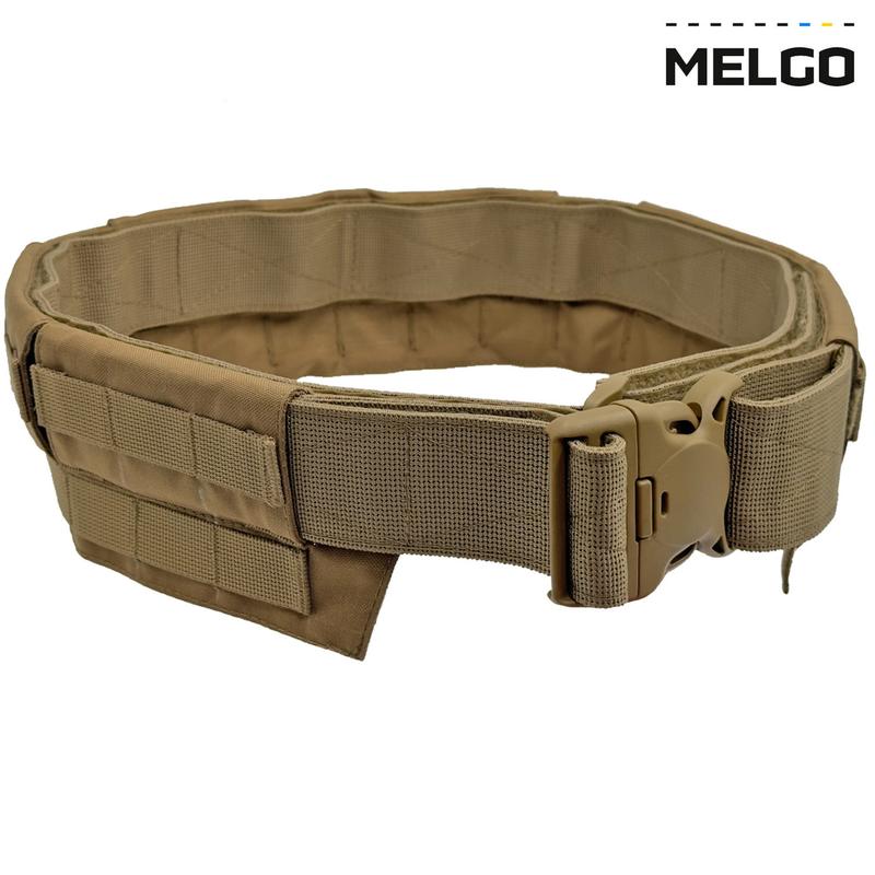 MELGO Tactical WarBelt Cordura Тактичний бойовий пояс MOLLE зі швидким скиданням Розміри - М - на обхват стегон 86-101 см (довжина внутрішнього поясу - 84 см, 2 ряди по 13 осередків) - L - на обхват стегон 94-109 см (довжина внутрішнього поясу - 92 см, 2 ряди по 16 осередків) - XL - на обхват стегон 100-115 см (довжина внутрішнього поясу - 99 см, 2 ряди по 18 осередків) Конструкція - Внутрішній пояс із липучкою для кріплення зовнішнього пояса. 1. Міцна поліамідна ремінна стрічка шириною 5 см із нашитою нейлоновою липучкою. 2. Розмір регулюється пряжкою на поясі. - Зовнішній пояс із системою кріплення MOLLE. 1. Кріпиться на внутрішній пояс за допомогою липучки. 2. В основі знаходиться супер міцна поліамідна стропа, шириною 5 см. 3. Ця ремінна стрічка вставлена в тканинну складову пояса і регулюється антиугінним фастексом. 4. MOLLE інтерфейс по всій довжині пояса. Використовувані матеріали - фурнітура WOOJIN - 100% нейлон - ремінна стрічка - 100% поліамід - липучка клас А - 100% нейлон - тканина Cordura 1000 D 1. Склад тканини: 100% нейлон 6.6 2. Щільність м2: 280 г 3. Покриття: 1 шар поліуретану (PU) 4. Водовідштовхування: min.4 5. Зносостійкість: min. 2800H по основі 6. Міцність на розрив: min. 280H по основі
