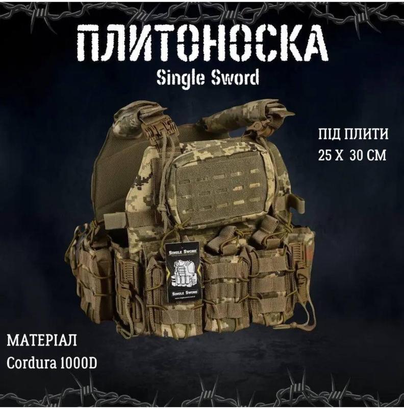 Плитоноска single sword із системою 4 точки бистрого скиду піксель