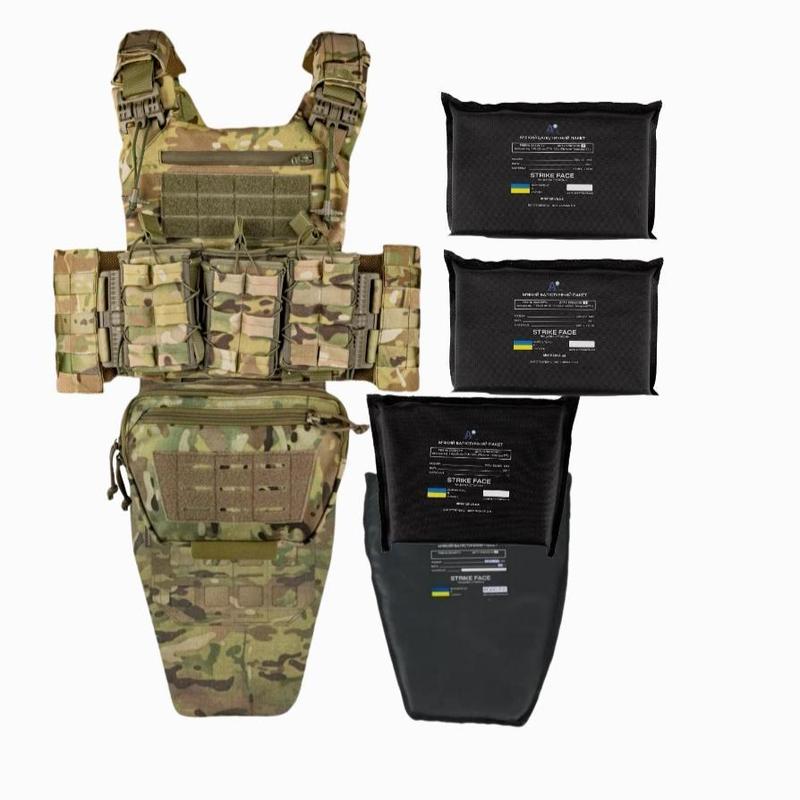 В Комплекті -Плитоноска Cordura 1000D 2 шт. -Подвійний підсумок під АК/ АR 3 шт -Білістичний пакет в бокові кармани 20*15 см 2 класу 2 шт -Захист паху Cordura 1000D 320*250 з балістичним пакетом 2 класу 1 шт -Балістичний пакет STRIKE FACE в напашник 2й клас 200*165*135-1 шт. -Напашник Cordura 1000 (200х 250x60) — 1 шт. Плитоноска бокові кармани під балістичні пакети з політелену 15*20 см або 15*30 см Плитоноска під плити 30*25 см надміцна вологостійка Cordura 1000 D все прошите армовані нитками з'ємні 3 підсумка під БК на системі Molle в 1 підсумок поміщається 2 ріжка під АК з системою подвійного швидкого скидання, посилений демпфер на грудях, спині та плечах плечеві лямки регулюються по висоті з можливістю швидкого скидання камербанд регулюється під будь-який об'єм попереду ліпучками, на спині резинкою, система Molle по всій поверхні, водонепроникний карман на грудях на змійці для особистих речей або документів, ручка на спині для евакуації. Якість-ТОП ! Балістичні пакети 2 класу Розмір 20*15 см Вага 252 г 1 шт Клас захисту 2 Матеріал НВМПЕ+СНМ ДСТУ 8782:2018 Товщина 14 мм балістичний пакет виготовлений з дотриманням всіх технологічних норм, та відповідає 2 класу захисту згідно ДСТУ 8782:2018 балістичні пакети витримують: 9 х 18 мм (9 мм Makarov – швидкість кулі 335±10 м/c); 9 х 19 мм (9 мм Luger – швидкість кулі 335±10 м/c); 7.62 × 25 мм (25мм Tokarev – швидкість кулі 430±15 м/c). Згідно STANAG 2920 v50=720 м/сек Згідно міжнародного стандарту Згідно протоколу відстрілу витримує наступні набої : 9*18 мм (Макарів) 9*19 мм (Luger) 2й клас: 7.62*25 ( ТТ) Захист паху 2 класу Розмір захист паху . 32*25 см Виготовлений з Cordura 1000D – надміцної тканини, стійкої до стирання та високих навантажень. По обидва боки фартуха передбачили MOLLE інтерфейс, виконаний за технологією Laser Cut. Даний елемент спорядження комплектується балістичним пакетом 2 класу Клас захисту 2 Матеріал НВМПЕ+СНМ ДСТУ 8782:2018 Товщина 14 мм балістичний пакет виготовлений з дотриманням всіх технологічних норм, та відповідає 2 класу захисту згідно ДСТУ 8782:2018 балістичні пакети витримують: 9 х 18 мм (9 мм Makarov – швидкість кулі 335±10 м/c); 9 х 19 мм (9 мм Luger – швидкість кулі 335±10 м/c); 7.62 × 25 мм (25мм Tokarev – швидкість кулі 430±15 м/c). Згідно STANAG 2920 v50=720 м/сек Згідно міжнародного стандарту Згідно протоколу відстрілу витримує наступні набої : 9*18 мм (Макарів) 9*19 мм (Luger) 2й клас: 7.62*25 ( ТТ) Напашник Cordura 1000D Розмір 20 х 25 х 6 см Балістичний пакет STRIKE FACE для 2й клас 200*165*135 для напашника Клас захисту 2 Матеріал НВМПЕ+СНМ ДСТУ 8782:2018 Товщина 14 мм балістичний пакет виготовлений з дотриманням всіх технологічних норм, та відповідає 2 класу захисту згідно ДСТУ 8782:2018 балістичні пакети витримують: 9 х 18 мм (9 мм Makarov – швидкість кулі 335±10 м/c); 9 х 19 мм (9 мм Luger – швидкість кулі 335±10 м/c); 7.62 × 25 мм (25мм Tokarev – швидкість кулі 430±15 м/c). Згідно STANAG 2920 v50=720 м/сек Згідно міжнародного стандарту Згідно протоколу відстрілу витримує наступні набої : 9*18 мм (Макарів) 9*19 мм (Luger) 2й клас: 7.62*25 ( ТТ)