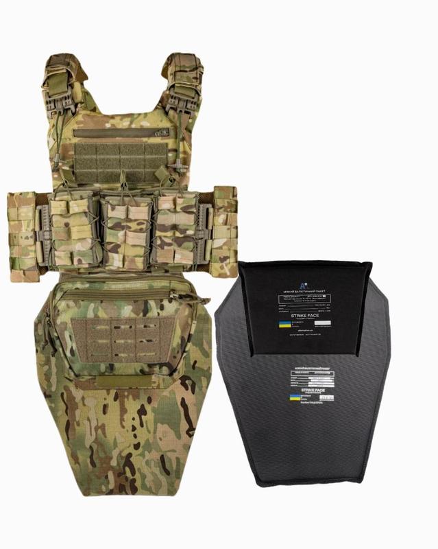 В Комплекті Плитоноска Cordura 1000D 2 шт. Подвійний підсумок під АК/ АR 3 шт Захист паху Cordura 1000D XL Розмір 32х38 см балістичним пакетом 1 класу 1 шт Балістичний пакет STRIKE FACE в напашник 1й клас 200*165*135-1 шт. Напашник Cordura 1000 (200х 250x60) — 1 шт. Плитоноска бокові кармани під балістичні пакети з політелену 15*20 см або 15*30 см Плитоноска під плити 30*25 см надміцна вологостійка Cordura 1000 D все прошите армовані нитками з'ємні 3 підсумка під БК на системі Molle в 1 підсумок поміщається 2 ріжка під АК з системою подвійного швидкого скидання, посилений демпфер на грудях, спині та плечах плечеві лямки регулюються по висоті з можливістю швидкого скидання камербанд регулюється під будь-який об'єм попереду ліпучками, на спині резинкою, система Molle по всій поверхні, водонепроникний карман на грудях на змійці для особистих речей або документів, ручка на спині для евакуації. Якість-ТОП ! Розмір захист паху . Розмір 32х38 см Виготовлений з Cordura 1000D – надміцної тканини, стійкої до стирання та високих навантажень. По обидва боки фартуха передбачили MOLLE інтерфейс, виконаний за технологією Laser Cut. Даний елемент спорядження комплектується балістичним пакетом 1 класу Напашник Cordura 1000D Розмір 20 х 25 х 6 см Балістичний пакет STRIKE FACE для 1й клас 200*165*135 для напашника Балістичні пакети 1й клас згідно ДСТУ 8788:2018 Матеріал: надвисокомолекулярний поліетилен (НВМПЕ) виробництва компанії Dyneema (made in USA🇺🇸) 1й клас: 8 прошарків політелену 2 прошарки небалістичного кевлару завтовшки 8.0 мм Згідно протоколу відстрілу витримує наступні набої: 1й клас: 9*18 мм (Макарів) 9*19 мм (Luger)