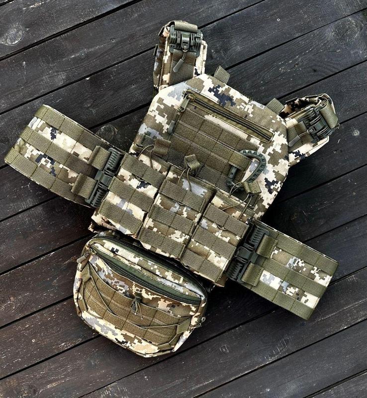 ## Плитоноска швидкого скидання з боковими карманами + тройний підсумок під АК та напашник для балістичного DM-11 В комплекті плитоноска 1 шт Тройний підсумок для магазинів АК 1 шт Напашник з карманом під балістичний пакет 25*20*5 см 1 шт бокові кармани під м'які балістичні пакети 15*30 см Якісна плитоноска за стандартом НАТО оснащена боковою та верхньою системою швидкого скидання, під плиту 25×30 см. - Розмір плитоноски універсальний, регулюється на плечах та по об'єму від М до XXL. - З середини прошита 3D сіткою та пом'якшуючою підкладкою, що слугує додатковим демпфером. - Позаду оснащена евукаційною ручкою. - По верху прошита системою Molle, що дозволяє кріпити будь-які підсумки та інше додаткове спорядження. - По переду вшитий додатковий карман на блискавці для особистих потреб. - Бронеплити вставляються знизу та фіксуються широкою системою липучок, що не дасть вашим плитам випасти чи протерти кріплення. Виготовлена з міцної, водонепроникної тканини кордура. Для пошиву використовується поліамідна стропа. Для її виготовлення використовується стійкий до зносу, суперміцний, високоякісний поліамід. Має відмінні властивості: високий рівень міцності, надійна, зможе витримати великі навантаження, стійка до негативного впливу ультрафіолету, вологи, високих/низьких температур, довговічна. Відповідає вимогам вітчизняних стандартів якості. Плитоноска прошита армованими нитками, що підвищує термін служби виробу. Встигніть замовити, кількість штук за акцією обмежена! Остерігайтеся підробок і низькоякісного товару, його зараз дуже багато представлено під видом opигiнaлy! Ми пропонуємо найвищу добротну якість товару на ринку України, який виконує свою функцію та від якого ви отримуватиме тільки приємні емоції. Чому купують саме у нас? Відгуки та рекомендації реальних клієнтів Наш магазин має численні позитивні відгуки від задоволених клієнтів. Ви можете ознайомитися з їхнім досвідом і рекомендаціями в описі нижче та на нашому сайті, що допоможе вам зробити обґрунтований вибір. Прозорість і чесність Ми ведемо відкриту і чесну політику у відносинах з клієнтами і завжди йдемо на зустріч. Усі характеристики товарів, умови гарантії та обміну чітко вказані на нашому сайті, що дозволяє уникнути непорозумінь та забезпечує довіру клієнтів. Легка система повернення товарів Ми розуміємо, що іноді товар може не підійти Вам по тим чи іншим причинам. Тому ми пропонуємо гнучку та прозору систему повернення товарів, що забезпечує вам спокій і впевненість у вашій покупці. Високий рівень обслуговування клієнтів, 10 років досвіду Наші фахівці завжди готові надати професійну консультацію та допомогу у виборі товару. Ми цінуємо кожного клієнта і прагнемо зробити процес покупки максимально комфортним і приємним. Швидка доставка та зручні умови оплати Ми пропонуємо швидку та надійну доставку по всій країні, а також різноманітні способи оплати, включаючи готівковий і безготівковий розрахунок. Наші клієнти можуть обрати найзручніший для себе спосіб отримання товару. ✅ Весь товар перевіряється на наявність браку перед відправленням ✅ Відгуки наших клієнтів Поквапся, товару за акцією залишилося всього 3шт! ✅ З турботою про кожного клієнта ✅ ДОСТАВКА ПО всій УКРАЇНІ: Ми якісно та надійно пакуємо всі наші посилки, за збереження вмісту можете не турбуватися. Але все ж