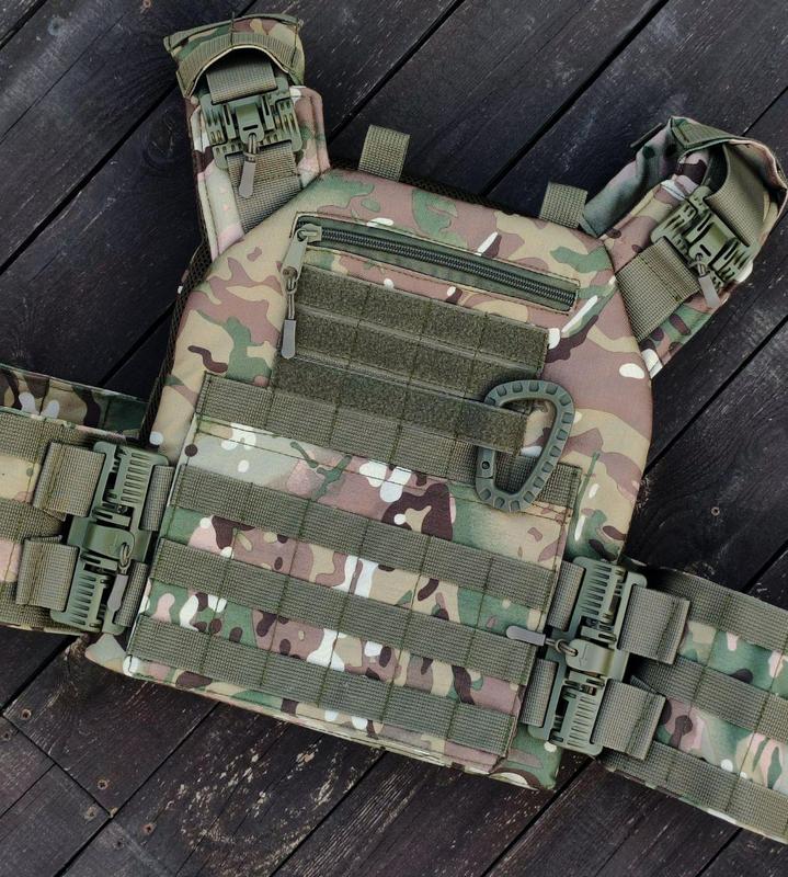 ## Плитоноска швидкого скидання з боковими карманами для балістичних пакетів 15*30 см DM-11 бокові кармани під м'які балістичні пакети 15*30 см Якісна плитоноска за стандартом НАТО оснащена боковою та верхньою системою швидкого скидання, під плиту 25×30 см. - Розмір плитоноски універсальний, регулюється на плечах та по об'єму від М до XXL. - З середини прошита 3D сіткою та пом'якшуючою підкладкою, що слугує додатковим демпфером. - Позаду оснащена евукаційною ручкою. - По верху прошита системою Molle, що дозволяє кріпити будь-які підсумки та інше додаткове спорядження. - По переду вшитий додатковий карман на блискавці для особистих потреб. - Бронеплити вставляються знизу та фіксуються широкою системою липучок, що не дасть вашим плитам випасти чи протерти кріплення. Виготовлена з міцної, водонепроникної тканини кордура. Для пошиву використовується поліамідна стропа. Для її виготовлення використовується стійкий до зносу, суперміцний, високоякісний поліамід. Має відмінні властивості: високий рівень міцності, надійна, зможе витримати великі навантаження, стійка до негативного впливу ультрафіолету, вологи, високих/низьких температур, довговічна. Відповідає вимогам вітчизняних стандартів якості. Плитоноска прошита армованими нитками, що підвищує термін служби виробу. Встигніть замовити, кількість штук за акцією обмежена! Остерігайтеся підробок і низькоякісного товару, його зараз дуже багато представлено під видом opигiнaлy! Ми пропонуємо найвищу добротну якість товару на ринку України, який виконує свою функцію та від якого ви отримуватиме тільки приємні емоції. Чому купують саме у нас? Відгуки та рекомендації реальних клієнтів Наш магазин має численні позитивні відгуки від задоволених клієнтів. Ви можете ознайомитися з їхнім досвідом і рекомендаціями в описі нижче та на нашому сайті, що допоможе вам зробити обґрунтований вибір. Прозорість і чесність Ми ведемо відкриту і чесну політику у відносинах з клієнтами і завжди йдемо на зустріч. Усі характеристики товарів, умови гарантії та обміну чітко вказані на нашому сайті, що дозволяє уникнути непорозумінь та забезпечує довіру клієнтів. Легка система повернення товарів Ми розуміємо, що іноді товар може не підійти Вам по тим чи іншим причинам. Тому ми пропонуємо гнучку та прозору систему повернення товарів, що забезпечує вам спокій і впевненість у вашій покупці. Високий рівень обслуговування клієнтів, 10 років досвіду Наші фахівці завжди готові надати професійну консультацію та допомогу у виборі товару. Ми цінуємо кожного клієнта і прагнемо зробити процес покупки максимально комфортним і приємним. Швидка доставка та зручні умови оплати Ми пропонуємо швидку та надійну доставку по всій країні, а також різноманітні способи оплати, включаючи готівковий і безготівковий розрахунок. Наші клієнти можуть обрати найзручніший для себе спосіб отримання товару. ✅ Весь товар перевіряється на наявність браку перед відправленням ✅ Відгуки наших клієнтів Поквапся, товару за акцією залишилося всього 3шт! ✅ З турботою про кожного клієнта ✅ ДОСТАВКА ПО всій УКРАЇНІ: Ми якісно та надійно пакуємо всі наші посилки, за збереження вмісту можете не турбуватися. Але все ж просимо перевіряти посилку на предмет пошкоджень безпосередньо у відділенні служби доставки, і в разі виявлення пошкоджень складати відпові