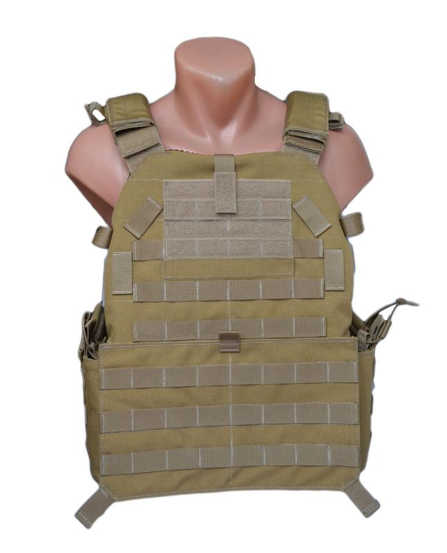 Plate Carrier 6094 У Матеріал: Cordura 1000d. (США) Фурнітура: 2М. Колір: Coyote.. Липучка: Тайвань Кишені під бічні плити. Окремі кишені під м'яку броню. Жилет регулюється по висоті ременями на велкро і по ширині - еластичною стяжкою. Два вбудованих підсумки з боків. Плоска нагрудна кишеня для дод. подсумков.( Можна замовити додатково) Не світиться в ІЧ спектрі. Передбачена система фіксації проводів, антен, шлангів гідросистеми для їх зручного розміщення і використання. На спині присутній евакуаційна петля.