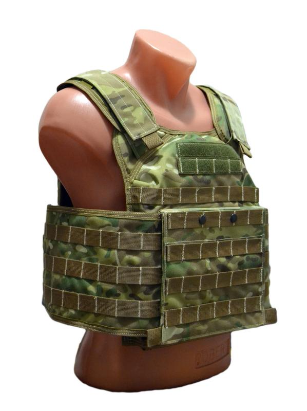 Материал: Cordura 1000d.(США NIR) Фурнітура: 2М. Підкладка: Сітка air-mesh. Цвет: Multicam. Розмір: Регульований. Бічні відділення для м'якої броні. Фронтальний клапан — кишеня, посилена кнопками.