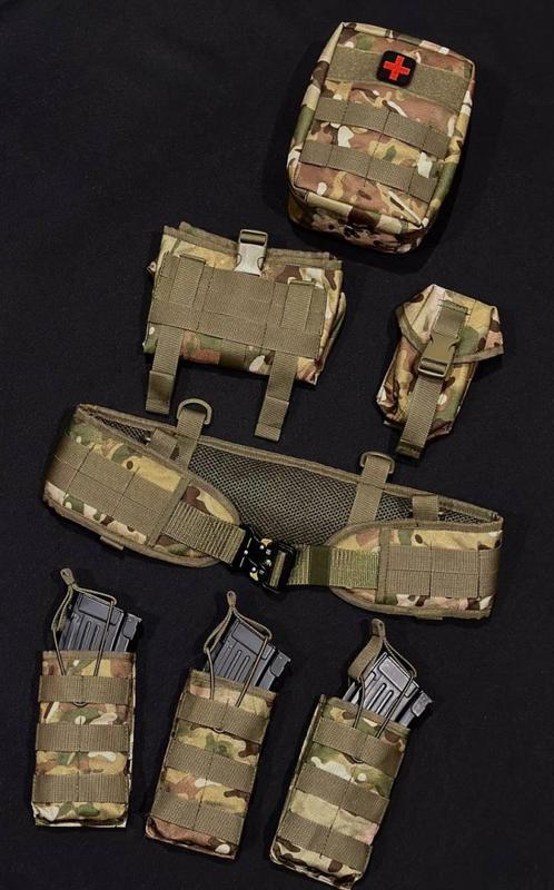Увага важлива інформація плечові лямки в комплект не входять! До комплекту входять: -РПС з магітним ременем "Кобра"; -підсумок під аптечку; -сумка для скиду; -підгранатник; -одинарний підсумок під магазини, 3 шт. Довжина ременя регулюється від 120 см до 95 см, ширина 4см. Розмір підкладки 90*10 см РПС оснащений кріпленнями для подальшого використання плечиків. Ремінь змінний. В середину вшита помякшуюча підкладка що слугує додатковим демфером. РПС оснащений дихаючою 3D сіткою з внутрішньої сторони, що робить його більш комфортнішим у використанні. С зовнішньої сторони система моллі з міцної та надійної поліамідної стропи, для кріплення підсумків та іншого додаткового спорядження. Все прошито армованими нитками, що підвищує термін служби виробу.