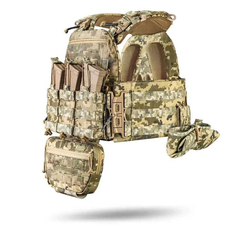 Під плити розміром 25 на 30 см. Каменбарди 15×30 см Обхват грудей: 92–126 см Рекомендовані розміри одягу: S / M / L / XL У комплекті всі підсумки в колір плитоноски: Плитоноска М7 PRO gen 2 Змінна передня панель (1 шт) Підсумок під магазин АК/AR (3 шт) Сумка-напашник М7 (1 шт) Підсумок під гранату (1 шт) Підсумок для скидання магазинів AK/AR (1 шт) Аптечний підсумок М8 (1 шт) Обирайте розмір по обхвату грудей в екіпіруванні (з формою, флісом, бушлатом). Якщо сумніваєтесь, оберайте трохи більше: буде комфортніше і не стягуватиме. Характеристики Тканина Cordura 1000d з IRR просоченням Стропа Поліамід 100% Швидкоскиди M2 Spider Coyote Brown Система кріплення спорядження MOLLE / VELCRO Наявність кишені під бічну захист Так, опціонально Під плити розміром 25 на 30 см. Фурнітура Max Zip та Woojin Стропа для евакуації Так, система Pro 80см Кріплення на плечах MOLLE / VELCRO Можливість встановити напашник та фартух Так Демфер на внутрішній частині Змінна система М8 Каучук K-FLEX ST DUCT NET AD 12мм Нитки Amann Strongbond 40 Німеччина Можливість встановлювати модульні панелі Так Поліпшене кріплення захисту шиї – тепер не блокує доступ до передньої адміністративної кишені. Можна працювати з картами, планшетами чи документами навіть із закріпленою бронею на шиї. ⠀ Кріплення захисту попереку - без ризику! - кишеня під плиту не перекривається. Захист став надійнішим без втрати функціональності. ⠀ Швидкоскиди 2M Spider – новий рівень – працюють однією рукою, навіть у рукавичках та у повній темряві. Тихо, швидко та надійно. Змінні передні панелі швидко змінюються під завдання: штурм, патруль, CQB або робота в тилу. Менше часу на налаштування — більше виконання завдання. ⠀ Нова ергономіка плечей — не натирає, рівномірно розподіляє вагу навіть за повного бойового комплекту. Перевірено практично. Нова система регулювання плечей - тепер на велкро з мітками. Швидке і точне підстроювання без здогадів і переробок. Що залишилося незмінним: – Cordura 1000D – надміцний та зносостійкий матеріал – Жакардова поліамідна стропа – надійність та довговічність – Топова фурнітура та блискавки – St0ong перевірене часом та фронтом