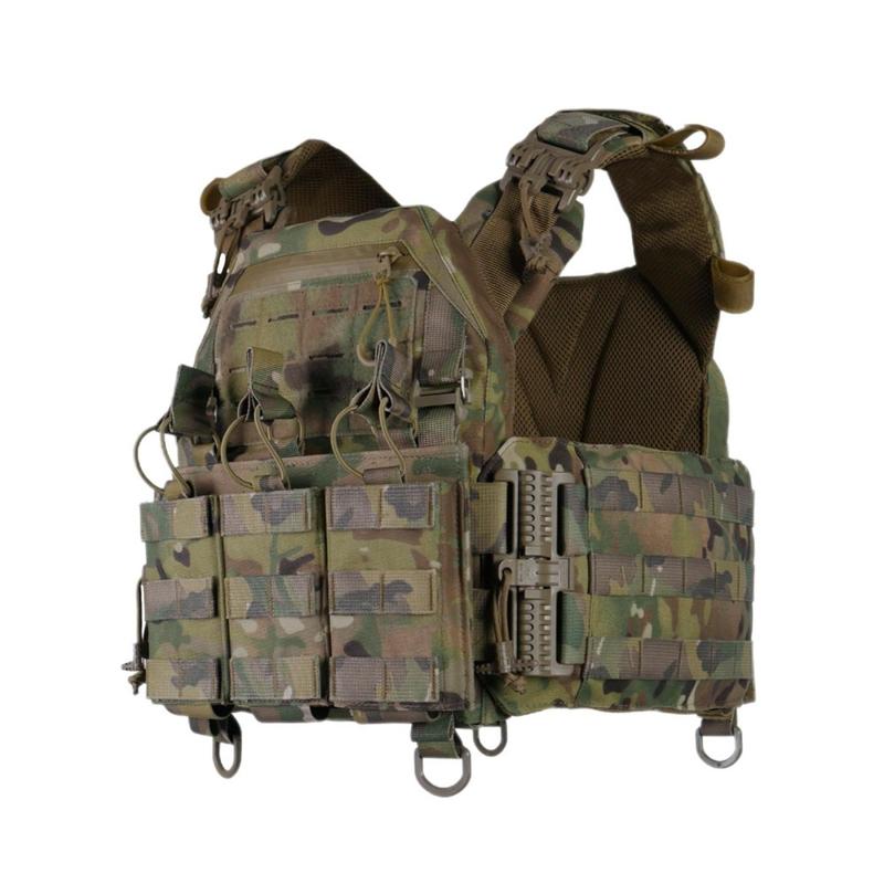 Увага важлива інформація Відправка 4-5 робочих днів В комплекті Плитоноска швидкого скидання CEN.2. 1 шт Швидкоз'ємна панель для 3 або 6 магазинів 1 шт Плитоноска оснащена з’ємною передньою Molle панеллю яка кріпиться до основи на Velcro та додатково двома карабінами Woojin. На ній зручно розміщуються 3 підсумки під 1 або два магазини, або інше Molle-сумісне спорядження. Цю панель можна швидко замінити на іншу із закрікленим на неї заздалегідь набором потрібних підсумків. Матеріал Cordura Nylon 6.6 1000D з NIR-просоченням Плити 25*30 см Бокові кармани під балістичні пакети 13,5*30,5 см. Характеристика плитоноски Матеріал: Виготовлена з Cordura Nylon 6.6 1000D з NIR-просоченням, що забезпечує виріб меншу помітність у приладах нічного бачення. Тканина має подвійне поліуретанове покриття для захисту від вологи та мастильних матеріалів, не підтримує горіння, не стирається, не вигорає на сонці. Сумісність: Підходить для бронеплит розміром 25*30 см зі скошеними верхніми кутами і товщиною до 30 мм (металеві або керамічні). Бокові кишені: Оснащена кишенями під балістичні пакети 13,5*30,5 см. Система Molle: Плитоноска має велкро панель з Luser Cut Molle на верхній частині, а також чотири ряди строп Molle на фронтальній частині та три ряди строп Molle на камербандах. Елементи захисту: Підходить для установки балістичних пакетів першого або другого класу від компанії Militex. Швидке скидання: Має подвійний механізм швидкого скидання в зоні плечей та камербандів для швидкого зняття плитоноски. Комфорт: Має ергономічні плечові лямки з м’яким демпфером та 3D-сіткою для більшого комфорту і правильного розподілу навантаження. Додаткові функції: Регульована система по довжині та об'єму. Д-кільця спереду та ззаду для кріплення додаткового спорядження. Велкро панель для розміщення патчів, Molle- спорядження та невеликого адміністративного відділення. Демпферні вставки: Внутрішня частина плитоноски має демпферні вставки обшиті 3D-сіткою для амортизації та правильної циркуляції повітря. Камербанди: З'ємні, з м'якими демпферами обшитими 3D-сіткою та кишенями під балістичні пакети 13,5*30,5 см Евакуаційна ручка: Ручка для евакуації, яка фіксується до спинки велкро- панелями. Ця плитоноска має високий рівень функціональності та надійності для захисту користувача в різних умовах.