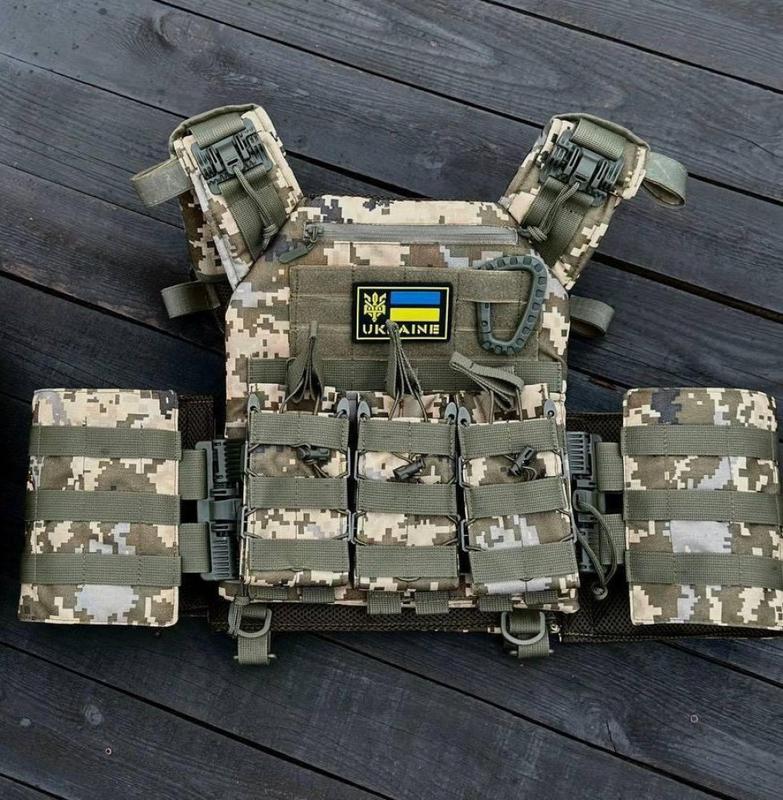 Звертаємо Вашу увагу, що фурнітура може відрізнятись по кольору, в залежності від партіі поставки. В комплекті плитоноска 1 шт Підсумок з пластиковими боками для АК /AR 3 шт бокові кармани під м'які балістичні пакети 15*30 см Якісна плитоноска за стандартом НАТО оснащена боковою та верхньою системою швидкого скидання, під плиту 25×30 см. - Розмір плитоноски універсальний, регулюється на плечах та по об'єму від М до XXL. - З середини прошита 3D сіткою та пом'якшуючою підкладкою, що слугує додатковим демпфером. - Позаду оснащена евукаційною ручкою. - По верху прошита системою Molle, що дозволяє кріпити будь-які підсумки та інше додаткове спорядження. - По переду вшитий додатковий карман на блискавці для особистих потреб. - Бронеплити вставляються знизу та фіксуються широкою системою липучок, що не дасть вашим плитам випасти чи протерти кріплення. Виготовлена з міцної, водонепроникної тканини Кордура 900D. Для пошиву використовується поліамідна стропа. Для її виготовлення використовується стійкий до зносу, суперміцний, високоякісний поліамід. Має відмінні властивості: високий рівень міцності, надійна, зможе витримати великі навантаження, стійка до негативного впливу ультрафіолету, вологи, високих/низьких температур, довговічна. Відповідає вимогам вітчизняних стандартів якості. Плитоноска прошита армованими нитками, що підвищує термін служби виробу.