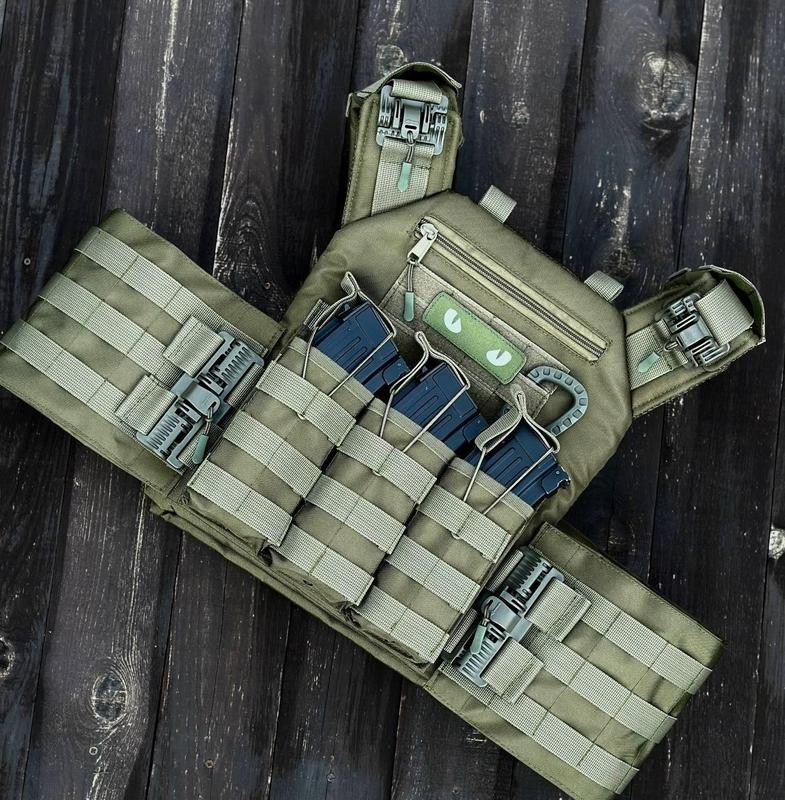 ## Плитоноска швидкого скидання з боковими карманами + тройний підсумок під магазини - універсальна війсь DM-11 Магазини для АК не йдуть в комплекті В комплекті плитоноска 1 шт Тройний підсумок під магазини 1 шт бокові кармани під м'які балістичні пакети 15*30 см Якісна плитоноска за стандартом НАТО оснащена боковою та верхньою системою швидкого скидання, під плиту 25×30 см. - Розмір плитоноски універсальний, регулюється на плечах та по об'єму від М до XXL. - З середини прошита 3D сіткою та пом'якшуючою підкладкою, що слугує додатковим демпфером. - Позаду оснащена евукаційною ручкою. - По верху прошита системою Molle, що дозволяє кріпити будь-які підсумки та інше додаткове спорядження. - По переду вшитий додатковий карман на блискавці для особистих потреб. - Бронеплити вставляються знизу та фіксуються широкою системою липучок, що не дасть вашим плитам випасти чи протерти кріплення. Виготовлена з міцної, водонепроникної тканини кордура. Для пошиву використовується поліамідна стропа. Для її виготовлення використовується стійкий до зносу, суперміцний, високоякісний поліамід. Має відмінні властивості: високий рівень міцності, надійна, зможе витримати великі навантаження, стійка до негативного впливу ультрафіолету, вологи, високих/низьких температур, довговічна. Відповідає вимогам вітчизняних стандартів якості. Плитоноска прошита армованими нитками, що підвищує термін служби виробу. Встигніть замовити, кількість штук за акцією обмежена! Остерігайтеся підробок і низькоякісного товару, його зараз дуже багато представлено під видом opигiнaлy! Ми пропонуємо найвищу добротну якість товару на ринку України, який виконує свою функцію та від якого ви отримуватиме тільки приємні емоції. Чому купують саме у нас? Відгуки та рекомендації реальних клієнтів Наш магазин має численні позитивні відгуки від задоволених клієнтів. Ви можете ознайомитися з їхнім досвідом і рекомендаціями в описі нижче та на нашому сайті, що допоможе вам зробити обґрунтований вибір. Прозорість і чесність Ми ведемо відкриту і чесну політику у відносинах з клієнтами і завжди йдемо на зустріч. Усі характеристики товарів, умови гарантії та обміну чітко вказані на нашому сайті, що дозволяє уникнути непорозумінь та забезпечує довіру клієнтів. Легка система повернення товарів Ми розуміємо, що іноді товар може не підійти Вам по тим чи іншим причинам. Тому ми пропонуємо гнучку та прозору систему повернення товарів, що забезпечує вам спокій і впевненість у вашій покупці. Високий рівень обслуговування клієнтів, 10 років досвіду Наші фахівці завжди готові надати професійну консультацію та допомогу у виборі товару. Ми цінуємо кожного клієнта і прагнемо зробити процес покупки максимально комфортним і приємним. Швидка доставка та зручні умови оплати Ми пропонуємо швидку та надійну доставку по всій країні, а також різноманітні способи оплати, включаючи готівковий і безготівковий розрахунок. Наші клієнти можуть обрати найзручніший для себе спосіб отримання товару. ✅ Весь товар перевіряється на наявність браку перед відправленням ✅ Відгуки наших клієнтів Поквапся, товару за акцією залишилося всього 3шт! ✅ З турботою про кожного клієнта ✅ ДОСТАВКА ПО всій УКРАЇНІ: Ми якісно та надійно пакуємо всі наші посилки, за збереження вмісту можете не турбуватися. Але все ж просимо перевіряти по