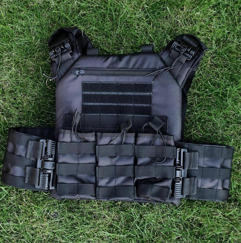## Плитоноска швидкого скидання чорний для бронеплит 25×30 см NATO стандарт кордура. VE-33 Тройний підсумок під магазини в комплект не входить !!! Якісна плитоноска за стандартом НАТО оснащена боковою та верхньою системою швидкого скидання, під плиту 25×30 см. - Розмір плитоноски універсальний, регулюється на плечах та по об'єму від М до XXL. - З середини прошита 3D сіткою та пом'якшуючою підкладкою, що слугує додатковим демпфером. - Позаду оснащена евукаційною ручкою. - По верху прошита системою Molle, що дозволяє кріпити будь-які підсумки та інше додаткове спорядження. - По переду вшитий додатковий карман на блискавці для особистих потреб. - Бронеплити вставляються знизу та фіксуються широкою системою липучок, що не дасть вашим плитам випасти чи протерти кріплення. Виготовлена з міцної, водонепроникної тканини кордура. Для пошиву використовується поліамідна стропа. Для її виготовлення використовується стійкий до зносу, суперміцний, високоякісний поліамід. Має відмінні властивості: високий рівень міцності, надійна, зможе витримати великі навантаження, стійка до негативного впливу ультрафіолету, вологи, високих/низьких температур, довговічна. Відповідає вимогам вітчизняних стандартів якості. Плитоноска прошита армованими нитками, що підвищує термін служби виробу. Встигніть замовити, кількість штук за акцією обмежена! Остерігайтеся підробок і низькоякісного товару, його зараз дуже багато представлено під видом opигiнaлy! Ми пропонуємо найвищу добротну якість товару на ринку України, який виконує свою функцію та від якого ви отримуватиме тільки приємні емоції. Чому купують саме у нас? Відгуки та рекомендації реальних клієнтів Наш магазин має численні позитивні відгуки від задоволених клієнтів. Ви можете ознайомитися з їхнім досвідом і рекомендаціями в описі нижче та на нашому сайті, що допоможе вам зробити обґрунтований вибір. Прозорість і чесність Ми ведемо відкриту і чесну політику у відносинах з клієнтами і завжди йдемо на зустріч. Усі характеристики товарів, умови гарантії та обміну чітко вказані на нашому сайті, що дозволяє уникнути непорозумінь та забезпечує довіру клієнтів. Легка система повернення товарів Ми розуміємо, що іноді товар може не підійти Вам по тим чи іншим причинам. Тому ми пропонуємо гнучку та прозору систему повернення товарів, що забезпечує вам спокій і впевненість у вашій покупці. Високий рівень обслуговування клієнтів, 10 років досвіду Наші фахівці завжди готові надати професійну консультацію та допомогу у виборі товару. Ми цінуємо кожного клієнта і прагнемо зробити процес покупки максимально комфортним і приємним. Швидка доставка та зручні умови оплати Ми пропонуємо швидку та надійну доставку по всій країні, а також різноманітні способи оплати, включаючи готівковий і безготівковий розрахунок. Наші клієнти можуть обрати найзручніший для себе спосіб отримання товару. ✅ Весь товар перевіряється на наявність браку перед відправленням ✅ Відгуки наших клієнтів Поквапся, товару за акцією залишилося всього 3шт! ✅ З турботою про кожного клієнта ✅ ДОСТАВКА ПО всій УКРАЇНІ: Ми якісно та надійно пакуємо всі наші посилки, за збереження вмісту можете не турбуватися. Але все ж просимо перевіряти посилку на предмет пошкоджень безпосередньо у відділенні служби доставки, і в разі виявлення пошкоджень складати відпо