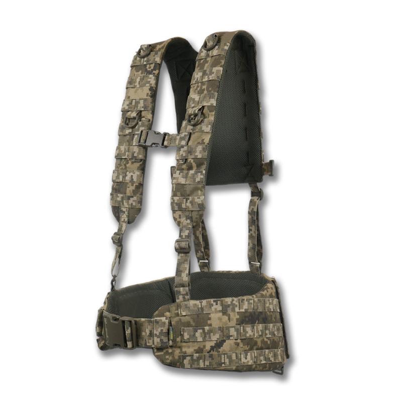 Пояс анатомічної форми Kiborg R-1 GEN.2 - створений для використання у бойових умовах. Він виготовлений з сертифікованої тканини Cordura Nylon 1000D з IRR- покриттям, що не контрастує в приладах нічного бачення та 3D-сітки генерації А-1, яка забезпечує ефективне відведення тепла та амортизацію, щільність ~280 г/м². Використана фурнітура 100% ацетал від Woojin Plastic (Південна Корея), що гарантує надійність і довговічність. Переваги 1. Пояс має жорсткі пластикові вставки, що допомагають тримати форму. Внутрішня частина м'яка, завдяки 10 мм наповнювачу. 2. Карман на велкро для можливості встановлення балістичного пакета 1 класу захисту від компанії Militex. 3. Анатомічний крій завдяки якому пояс має форму напівовалу, що запобігає спаданню при активному русі. 4. Бокові частини 2 ряди MOLLE для кріплення підсумків та іншого спорядження. 5. Задня частина має 4 ряди MOLLE, що дозволяють спорядити пояс необхідним обладнанням. 6. Спеціальний двощілинний фастекс WJ забезпечує надійне регулювання в два боки.